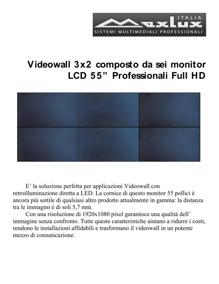 Videowall 3x2 composto da sei monitor LCD 55” Professionali Full HD