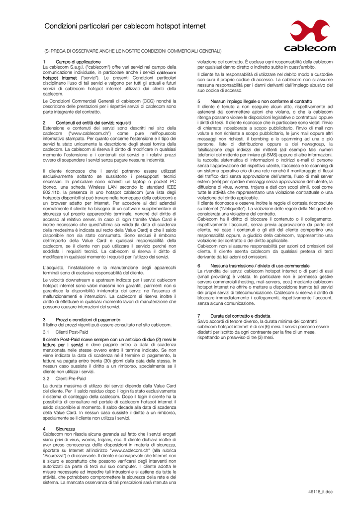 cablecom hotspot internet è di sei (6) mesi. I servizi possono essere