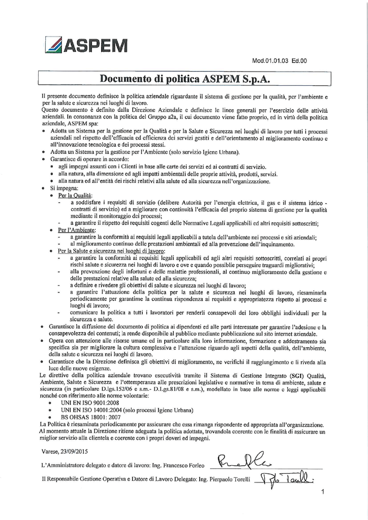 Documento di Politica Aziendale