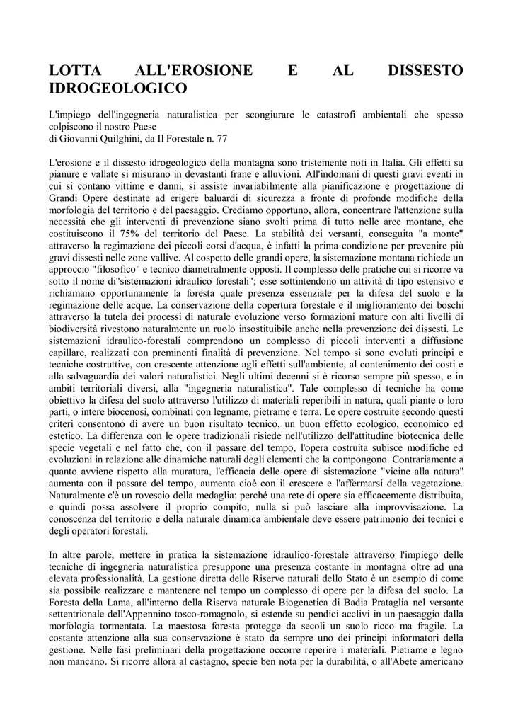 lotta all`erosione e al dissesto idrogeologico