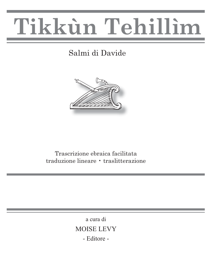 Tikkùn Tehillìm Salmi di Davide Trascrizione ebraica facilitata traduzione lineare • traslitterazione a cura di MOISE LEVY - Editore - Tikkùn Tehillìm VII Presentazione Q uesto libro ha avuto una nascita particolare. Ho cominciato a interessarmi ai Salmi molti anni fa, in seguito a una mia visita a New York dove avevo notato con stupore persone che li leggevano approfittando dei momenti liberi, aspettando l’autobus o nella metropolitana. Per cercare di capire cosa provassero, durante una successiva vacanza ho portato con me quel libro e ho iniziato a recitarli anch’io scontrandomi subito con una certa difficoltà. Pur essendo abituato alla lingua ebraica non capivo il significato delle parole, e anche la semplice lettura richiedeva una particolare attenzione. Mi sono imposto di leggerli un poco per giorno quasi si trattasse di una sfida ma, con la sola eccezione dei Salmi che fanno parte delle preghiere, la pronuncia continuava a risultare difficile, a volte addirittura enigmatica e continuavo comunque a essere incerto sulla corretta pronuncia di molte parole. Il mio impegno è diventato più tenace dopo una lezione nella quale mi è stato spiegato che la recitazione dei Salmi crea una vibrazione sonora che ha virtù particolari tra le quali i rabbini includono quella di purificare l’aria. Questa considerazione mi ha affascinato, anche perché è stato riportato l’esempio delle onde sonore provenienti dallo spazio, che pur non avendo un senso apparente, costituiscono forse un segnale che non sappiamo ancora decifrare. La consapevolezza che noi ebrei, con i Salmi, abbiamo a disposizione un modo per produrre onde sonore dai possibili effetti benefici, unita al potere che l’ebraismo da sempre attribuisce alla parola, mi ha indotto non solo a continuarne la recitazione, ma anche a desiderare di approfondirne il contenuto. La ricerca di insegnanti esperti sui Salmi non è stata però fortunata. Le persone cui mi sono rivolto si sono mostrate restie nell’accettare l’argomento come tema delle lezioni e, dal momento che ai Salmi fanno riferimento tutti i commentatori della Torà e del Tanàch, ciò all’inizio mi sembrava strano. Proseguendo personalmente nei miei studi ho appreso alcuni dati interessanti, tra i quali ִתּקּוּן ְתּ ִה ִלּים VIII che il libro, insieme a quello dei proverbi e di Giobbe, ha la particolarità di avere dei teamìm~segni di canto differenti da tutti gli altri 21 libri del Tanàch. I teamìm dei Tehillìm sono classificati in 12 disgiuntivi (indicano una pausa nel versetto) e 9 congiuntivi (uniscono tra loro, nella lettura e nel significato, le parole che sono da essi contrassegnate) e hanno nomi e funzioni differenti da quelli anche simili presenti negli altri libri. Questi dettagli, uniti al fatto che non esiste un testo che li illustri esaurientemente e che l’interpretazione di molte parole e delle allusioni in esse contenute è difficilissima, mi hanno spiegato perché siano veramente poche le persone in grado di insegnarli. D’altro canto i Salmi sono stati recitati da sempre nelle comunità di vario rito sparse in tutto il mondo, e ciò è probabilmente all’origine delle attuali difformità. Molte delle innumerevoli edizioni esistenti dei Salmi non riportano i teamìm e quelle che li riportano differiscono l’una dall’altra al punto che si possono trovare fino a cinque varianti sulla stessa parola (vedi appendice sulle varianti possibili nell’edizione grande con CD). La testimonianza personale che posso portare sui Salmi è che nella mia esperienza quanto più li ho recitati tanto più la compagnia e il conforto che mi hanno saputo dare sono diventati indispensabili nella mia giornata. Ripensando oggi a quel lontano viaggio a New York, non mi sembra più così strano leggere i Tehillìm in ogni occasione. Posso al contrario dire che ora anch’io faccio parte di quelle persone che li leggono con regolarità ovunque, ricavando da essi sostegno e incoraggiamento. Il titolo di questo libro, Tikkùn Tehillìm~testo dei Salmi corretto, cioè conforme alla tradizione, è stato scelto perché è mia aspirazione offrire al lettore uno strumento semplice e chiaro ma allo stesso tempo preciso e attendibile, che serva di riferimento per conoscere il significato dei Salmi e il corretto modo di leggerli. Nella versione grande il libro è corredato anche dalla registrazione su un solo CD di tutti i Salmi recitati magistralmente da rav Elia Richetti, che oltre a essere dotato di una voce gradevole, ha il dono di una chiarezza e precisione di lettura tipicamente italiane. Il formato della registrazione MP3, il più comune e diffuso al giorno d’oggi, permette a chi lo desideri il trasferimento dei brani audio su un qualsiasi lettore portatile o addirittura sul telefonino, per ascoltare i Salmi in ogni momento della giornata. La presente edizione in formato tascabile è nata invece con uno scopo differente. In questi tempi particolarmente difficili per la situazione in Israele è mio auspicio che molti altri si uniscano alla schiera di quanti nel mondo recitano con regolarità i Salmi ed è quindi necessario disporre di un libretto che possa seguire il fedele in ogni momento Tikkùn Tehillìm IX della giornata. In Israele poi, da qualche tempo, si sente sempre più spesso citare la frase ~ ְתּ ִהלִּים נֶגֶד טִילִיםTehillìm néghed tilìm~Salmi contro i missili e trovo che non esiste espressione più semplice e nel contempo efficace per manifestare che l’unico vero ed efficace aiuto per Israele può venire solo dal Signore. Nella storia Egli ci ha sempre aiutato a sopravvivere come popolo ai peggiori nemici e nei momenti di dolore e smarrimento i nostri padri sono sempre ricorsi ai Salmi. Se è vero che grazie ad essi possiamo contribuire a migliorare noi stessi grazie alla guida morale che vi si può trovare o a migliorare il mondo, secondo quanto mi è stato insegnato a suo tempo, “purificando l’aria c