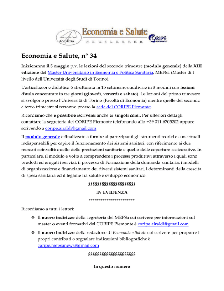 Economia e Salute, n° 34 - Coripe