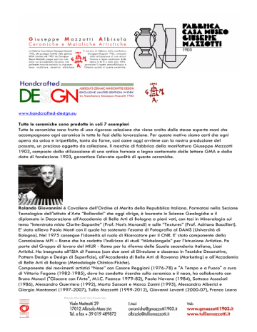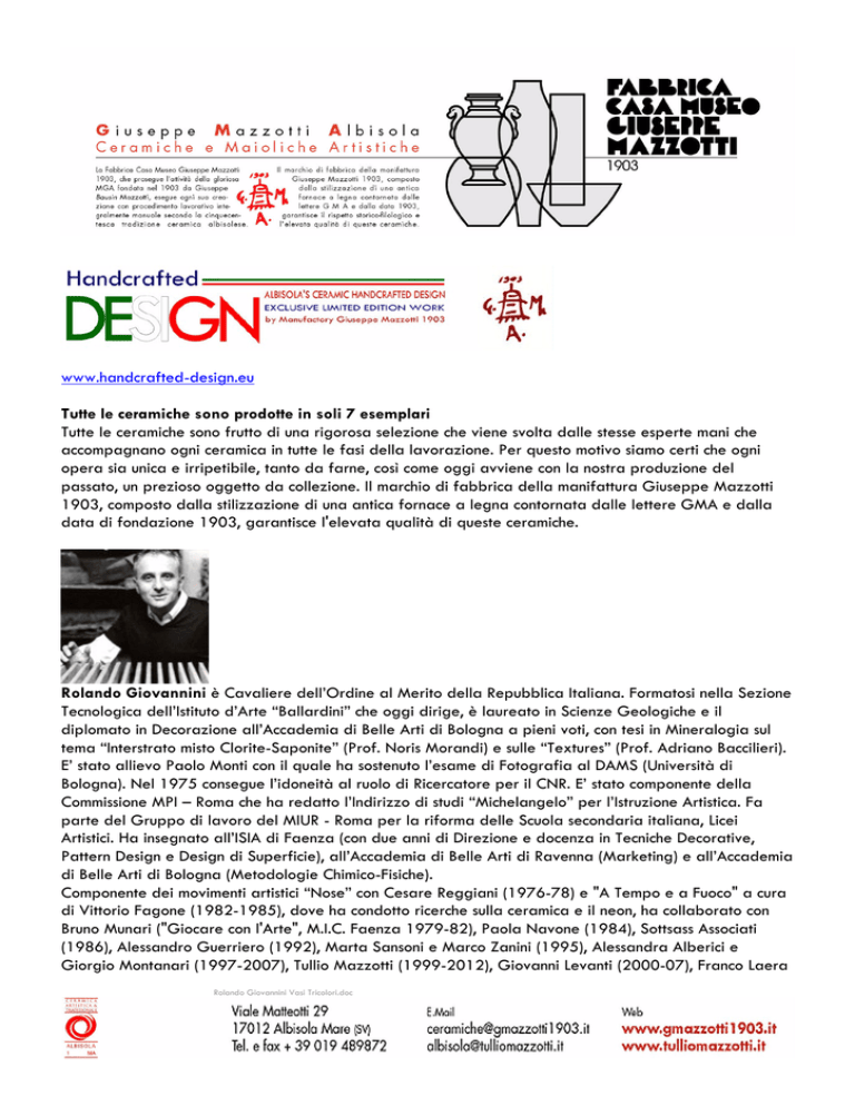 www.handcrafted-design.eu Tutte le ceramiche sono prodotte in soli