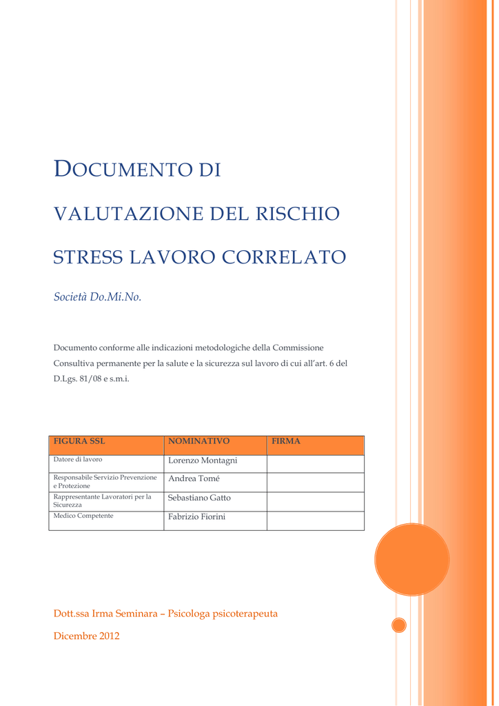Documento di valutazione del rischio stress lavoro