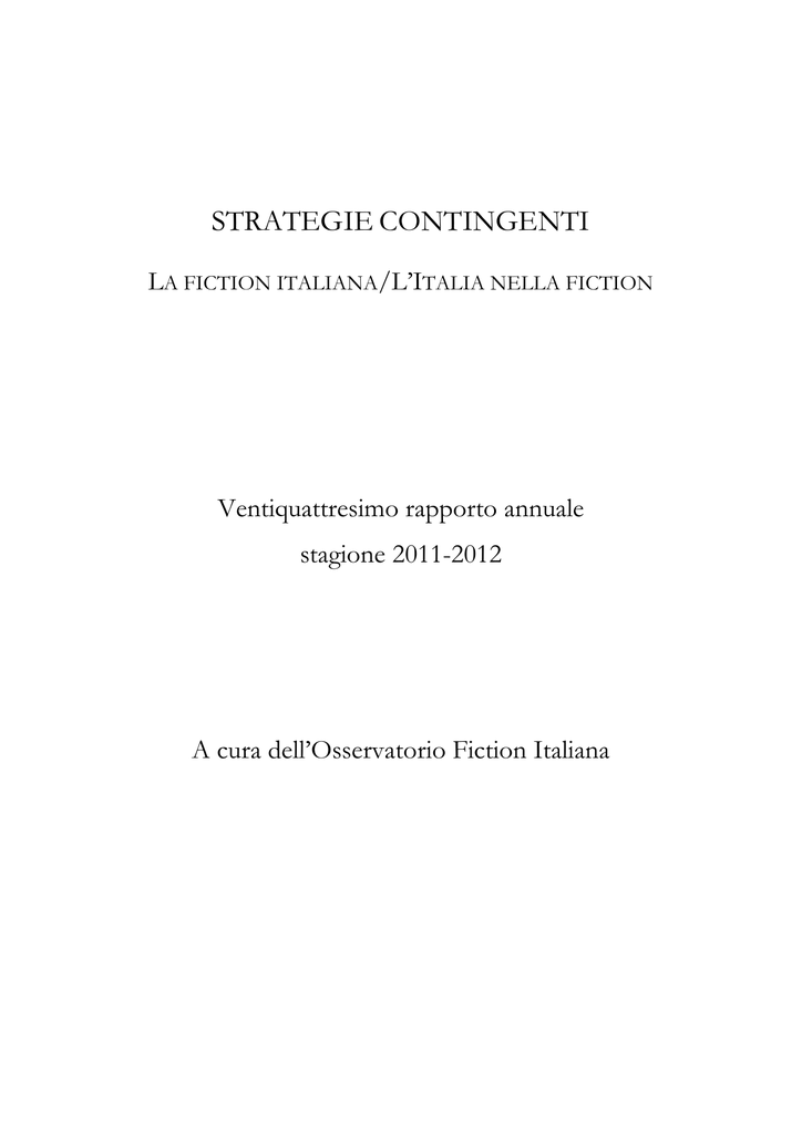 STRATEGIE CONTINGENTI LA FICTION ITALIANA/L’ITALIA NELLA FICTION Ventiquattresimo rapporto annuale stagione 2011-2012 A cura dell’Osservatorio Fiction Italiana Osservatorio Fiction Italiana (OFI) Direttore Milly Buonanno Vice Direttore Fabrizio Lucherini Via di Novella, 8 00199 Roma e-mail: [email protected] Indice L’idillio transatlantico dei television studies e la tradizione di qualità della fiction italiana. PARTE PRIMA – XXIV Rapporto dell’Osservatorio sulla Fiction Italiana Capitolo I. Strategie contingenti. La fiction italiana fra fluidità del mercato e rigidità dell’industria. Bilancio della stagione 2011-2012 di Fabrizio Lucherini 1. Ore: in crescita nella stagione, in calo sui 12 mesi – 2. Titoli: in netta crescita – 3. Formati: la nuova impennata delle miniserie – 4. Programmazione: in aumento le prime serate – 5. Gli ascolti: concentrati e polarizzati - 6. I produttori: prove di deframmentazione Capitolo II. Il programma dell’anno. Paolo Borsellino – I 57 giorni e Il delitto di Via Poma. Due esempi di fiction civile per due misteri italiani. di Giovanni Bechelloni Premessa - 1. Il metodo Falcone. Virtù, esperienza di vita e conoscenza come risorsa per abitare la complessità e contribuire a un mondo migliore - 1.1.Testimonianza sul metodo Falcone - A. Marcelle Padovani - B. Francesca Barra. C - Giuseppe Ayala - D. Giovanni Falcone - E. Riscontri di ricerca - 2. Misteri italiani e fiction civile - 3. Per la prima volta due film-tv come programmi dell’anno – 3.1. I valori produttivi – 3.2. La critica – 4. Riferimenti bibliografici FOCUS SECTION AI CONFINI DEL QUOTIDIANO. IL FANTASTICO NELLA SERIALITA’ ITALIANA Capitolo III. Il Restauratore di Emanuela Cocco 1. La tradizione narrativa – 2. L’immaginario di riferimento – 3. La struttura della serie – 4. Lo statuto dell’eroe – L’elemento straordinario Capitolo IV. Il tredicesimo apostolo di Domenico Ierone 1. La tradizione narrativa – 2. L’immaginario di riferimento – 3. I protagonisti – 4. L’impianto narrativo – 5. La declinazione del fantastico 3 PARTE SECONDA - Schede dei programmi della stagione 2010-2011 1. Film-tv e collection L’affondamento del Laconia – Il delitto di Via Poma – Noi credevamo – A fari spenti nella notte – 6 passi nel giallo – Mai per amore – I guardiani del tesoro – Area Paradiso – Suor Pascalina – Paolo Borsellino-I 57 giorni – L’una e l’altra 2. Miniserie Anna e i cinque 2 – Sangue caldo – Dov’è mia figlia – Il segreto dell’acqua – Il commissario Zagaria – Tiberio Mitri. Il campione e la miss – Il signore della truffa – Il generale Della Rovere – Violetta – La donna che ritorna – Dove la trovi una come me? – Viso d’angelo – Cenerentola – La ragazza americana – Baciati dall’amore – Sarò sempre tuo padre – I cerchi nell’acqua – La figlia del capitano – Anita Garibaldi – La vita che corre – Il generale dei briganti – Walter Chiari-Fino all’ultima risata – La Certosa di Parma – Il sogno del maratoneta – Barbarossa – Maria di Nazareth – Zodiaco-Il libro perduto – L’Olimpiade nascosta 3. Serie e Serial Cento Ventrine – Un posto al sole – Don Matteo 8 – Distretto di polizia 11 – Un amore e una vendetta – Così fan tutte – Tutti pazzi per amore 3 – Camera Café – Che Dio ci aiuti – Il tredicesimo apostolo – Il restauratore – Provaci ancora prof. 4 – Il giovane Montalbano – Le tre rose di Eva – Nero Wolfe – Benvenuti a tavola-Nord vs Sud – Una grande famiglia – Titanic-Nascita di una leggenda La ricerca è realizzata in collaborazione con Direzione Marketing Rai, Rai Fiction, Direzione Diritti e Produzione Fiction Rti, Associazione Produttori Televisivi 4 L’idillio transatlantico dei television studies e la tradizione di qualità della fiction italiana. di Milly Buonanno Relazione presentata al 4° fiction Day della Sapienza (Roma, 28 novembre 2012) ‘Qualità’ non indica la buona televisione in quanto tale, ma la cornice ideologica entro la quale vengono espressi i giudizi sulla buona televisione Simon Frith Quality tv è un termine ideologico che non si riferisce a nessuna forma mediale realmente esistente Sudeep Dasgupta 1. Il problema della qualità L’intento principale del presente contributo non è quello di discutere e valutare la qualità della fiction che si produce in Italia – qualche considerazione al riguardo sarà tuttavia espressa più avanti - ma, in sintonia con le citazioni poste in exergo, quello di indicare e problematizzare la cornice ideologica ovvero la pretesa universalizzante degli assunti, criteri e canoni in base ai quali nel dibattito accademico, e in buona misura anche nel conventional wisdom sulla televisione, si definisce e si identifica cosa sia o debba intendersi oggi per fiction di qualità. Non può essere motivo di sorpresa poiché, per l’appunto, rientra e trova sostegno in un senso comune largamente diffuso, costatare come all’insieme della fiction italiana contemporanea non arrida una positiva reputazione sotto il profilo della qualità, riconosciuta eventualmente solo a una manciata di eccezioni. Piuttosto che esserne il punto di partenza, il giudizio per la verità poco lusinghiero che da più parti si riversa sul prodotto nazionale sarà il punto di arrivo del mio discorso, inteso a ricostruire innanzitutto il contesto delle contingenze e il quadro comparativo internazionale entro cui tale giudizio si elabora e si esprime. E’ bene precisare che qui non si tratta in alcun modo di impegnarsi in una contesa valutativa, prendendo le difese di un sistema di storytelling imputato, a ragione o a torto (verosimilmente, l’una e l’altro), di scarso rendimento qualitativo, al di là o a dispetto di rese d’ascolto calanti ma ancora di qualche entità e qua e là punteggiate da buoni successi. Si tratta piuttosto di utilizzare il caso italiano, dal momento che de re nostra ag