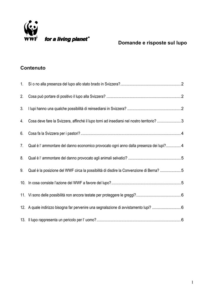 Domande e risposte sul lupo Contenuto