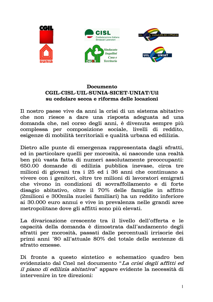 documento sunia sicet uniat cgil cisl uil