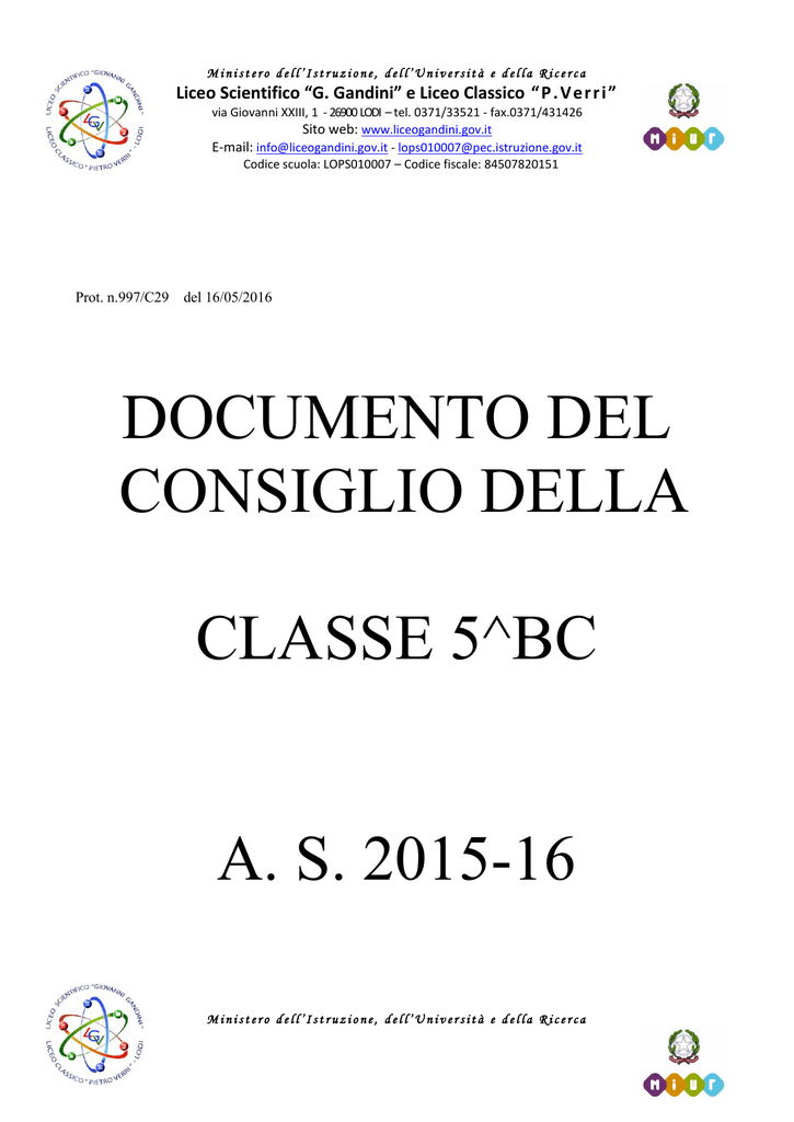 DOCUMENTO DEL CONSIGLIO DELLA CLASSE 5^BC A. S. 2015-16