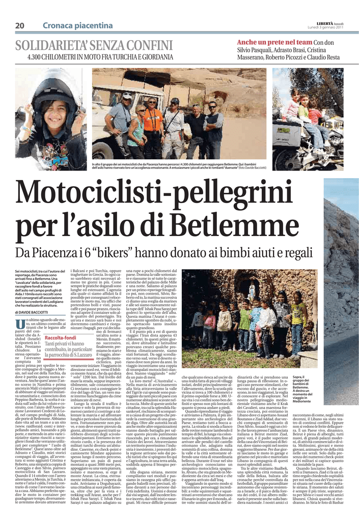 Motociclisti-pellegrini per l`asilo di Betlemme