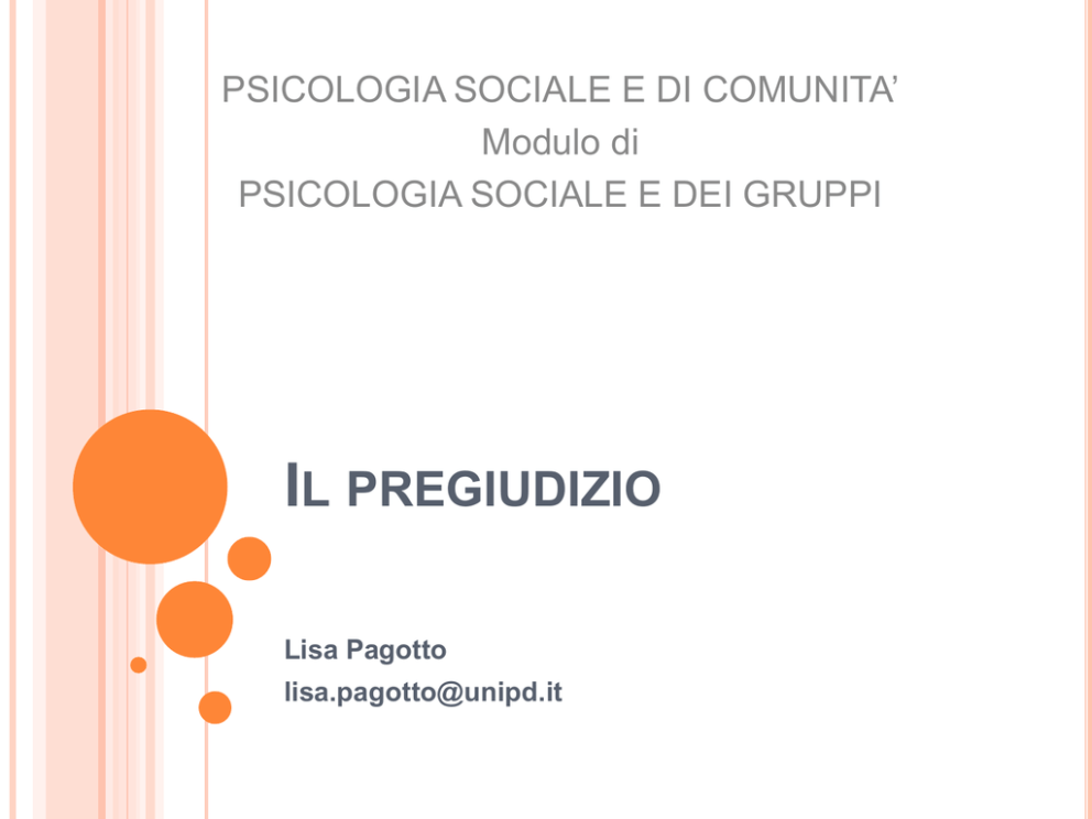 PSICOLOGIA SOCIALE E DI COMUNITA‟ Modulo di PSICOLOGIA SOCIALE E DEI GRUPPI IL PREGIUDIZIO Lisa Pagotto [email protected] CHE COSA È IL PREGIUDIZIO? “il pregiudizio è un’antipatia fondata su una generalizzazione falsa e inflessibile. Può essere sentito internamente o espresso. Può essere diretto verso un gruppo nel suo complesso o verso un individuo in quanto membro di quel gruppo” (Allport, 1954, p.9) - Pregiudizio Stereotipo Discriminazione LE ORIGINI DEL PREGIUDIZIO: SPIEGAZIONI INTRA-INDIVIDUALI Frustrazione-aggressività (Dollard et al., 1939): l‟aggressività nasce dalla frustrazione: un ostacolo tra un bisogno e il suo soddisfacimento Personalità autoritaria (Adorno et al., 1950): clima familiare rigido e repressivo provoca una forte aggressività inespressa, che si traduce in senso del dovere e intolleranza verso i devianti e i diversi Autoritarismo (Altemeyer, 1988): sottomissione all‟autorità, convenzionalismo, aggressività autoritaria Orientamento alla dominanza sociale (Sidanius & Pratto, 1999): ideologia basata sull‟esistenza e legittimazione di una gerarchia tra gruppi sociali LE ORIGINI DEL PREGIUDIZIO: SPIEGAZIONI SOCIO-ECONOMICHE Deprivazione relativa (es. Davies, 1969; Gurr, 1970; Runciman, 1966; Stouffer, 1949): “senso di insoddisfazione soggettiva che si sperimenta quando si confronta la propria situazione con quella che si ritiene dovrebbe essere e la si giudica peggiore” - Confronto con altre persone - Confronto con il passato - Confronto con le aspettative Conflitto realistico (Sherif, 1966): Il conflitto nasce dalla competizione per scarse risorse LE ORIGINI DEL PREGIUDIZIO: SPIEGAZIONI PSICO-SOCIALI Identità sociale (Tajfel, 1981): Bisogno di un‟identità sociale positiva e distinta l‟outgroup viene visto come una minaccia alla distintività positiva dell‟ingroup Riduzione dell’incertezza (Hogg, 2000): Bisogno di certezze: l‟ingroup fornisce un sistema di valori, informazioni sul mondo e sugli altri (una realtà condivisa e convalidata socialmente) l‟outgroup rappresenta qualcosa di diverso e di minaccioso CHE COSA È IL PREGIUDIZIO? Componente cognitivo-percettiva: Categorizzazione e accentuazione percettiva (differenziazione inter-categ e assimilazione intra-categ.) + Componente motivazionale: Percezione dell‟altro come diverso e minaccioso DIVERSE FORME DI PREGIUDIZIO Si può essere apertamente razzisti oggi? Non è più socialmente accettato esprimere pregiudizi e atteggiamenti ostili nei confronti delle minoranze Nuove - - misure: Scale che misurano le nuove forme del pregiudizio Comportamenti in situazioni “ambigue” Comportamenti spontanei (es. distanza) Utilizzo del linguaggio Tecniche basate sui tempi di risposta IL PREGIUDIZIO MANIFESTO E LATENTE (PETTIGREW & MEERTENS, 1995) Pregiudizio manifesto = “vecchio stile” - Percezione di minaccia e rifiuto dell‟outgroup - Rifiuto dell‟intimità vs. Pregiudizio latente = “moderno” - Difesa dei valori tradizionali - Esagerazione delle differenze culturali - Negazione di emozioni positive IL PREGIUDIZIO MANIFESTO E LATENTE (PETTIGREW & MEERTENS, 1995) PREGIUDIZIO MANIFESTO + Bigotti PREGIUDIZIO LATENTE - + Egalitari Sottili - IL RAZZISMO AVVERSIVO (GAERTNER & DOVIODIO, 1986; DOVIDIO, 2001) Ambivalenza tra valori e ideali egalitari e sentimenti negativi nei confronti dell‟altro Discrepanza tra contenuti consapevoli/controllati e inconsapevoli/incontrollati Dissociazione tra risposte esplicite e implicite Emerge in situazioni di ambiguità Es. Assunzioni di candidato bianco o nero: se qualificazione intermedia preferito il bianco Es. Interazione tra partecipanti bianchi e neri: differenza tra comportamento verbale e comportamento non verbale IAT: IMPLICIT ASSOCIATION TEST (GREENWALD, MCGHEE E SCHWARTZ, 1998) Blocco Premere tasto “z” Premere tasto “m” 1 classificazione semplice (concetto) ITALIANI STRANIERI 2 classificazione semplice (valenza) Parole POSITIVE Parole NEGATIVE 3 classificazione doppia (congruente) ITALIANI O Parole POSITIVE STRANIERI O Parole NEGATIVE 4 classificazione semplice (concetto invertito) STRANIERI ITALIANI 5 classificazione doppia (incongruenete) STRANIERI O Parole POSITIVE ITALIANI O Parole NEGATIVE https://implicit.harvard.edu/implicit/italy/ PRIMO BLOCCO: CLASSIFICAZIONE DEL CONCETTO STRANIERO L = negativo ITALIANO A = positivo MARCO SECONDO BLOCCO: CLASSIFICAZIONE DI PAROLE POSITIVE E NEGATIVE NEGATIVO L = negativo POSITIVO A = positivo GIOIA TERZO BLOCCO: DOPPIA CLASSIFICAZIONE (CONGRUENTE) STRANIERO L = negativo O NEGATIVO A = ITALIANO positivo O POSITIVO IMMIGRATO QUINTO BLOCCO: DOPPIA CLASSIFICAZIONE (INCONGRUENTE) STRANIERO L = negativo O POSITIVO A = ITALIANO positivo O NEGATIVO IMMIGRATO SI PUÒ RIDURRE IL PREGIUDIZIO? Categorizzazione + percezione di minaccia Strategie che alterano la categorizzione - Ricategorizzazione (Identità Comune) - Categorizzazione incrociata Strategie che agiscono sulla percezione di minaccia - Contatto intergruppi - Assunzione di Prospettiva e Empatia L‟IPOTESI DEL CONTATTO (ALLPORT, 1954) Spesso pregiudizi e stereotipi nascono dal fatto di non conoscere direttamente l‟altro e le sue reali caratteristiche entrare in contatto con l‟altro, ci permette di conoscerlo e di disconfermare gli stereotipi del gruppo che rappresenta Condizioni affinché il contatto sia efficace: 1. Interazioni cooperative e piacevoli 2. Possibilità di conoscenza approfondita 3. Status simile 4. Supporto istituzionale PROBLEMATICHE CONNESSE ALL‟IPOTESI DEL CONTATTO Direzione causale: il contatto riduce il pregiudizio o il pregiudizio riduce il contatto? Studi longitudinali Situazioni di contatto “forzato” Categorizzazione: Il pregiudizio non dipende solo dal fatto che l‟altro è sconosciuto, ma anche dal semplice processo di categorizzazione. Se la categorizzazione non si può eliminare, come si può fare? DIVERSI MODELLI DI CONTATTO PERSONALIZZAZIONE O DECATEGORIZZAZIONE (BREWER & MILLER, 1984) Le ap