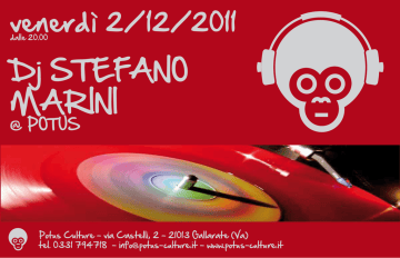 venerdì 2/12/2011 dalle 20.00 Dj STEFANO MARINI @ POTUS Potus Culture - via Castelli, 2 - 21013 Gallarate (Va) tel. 0331 794718 - [email protected] - www.potus-culture.it