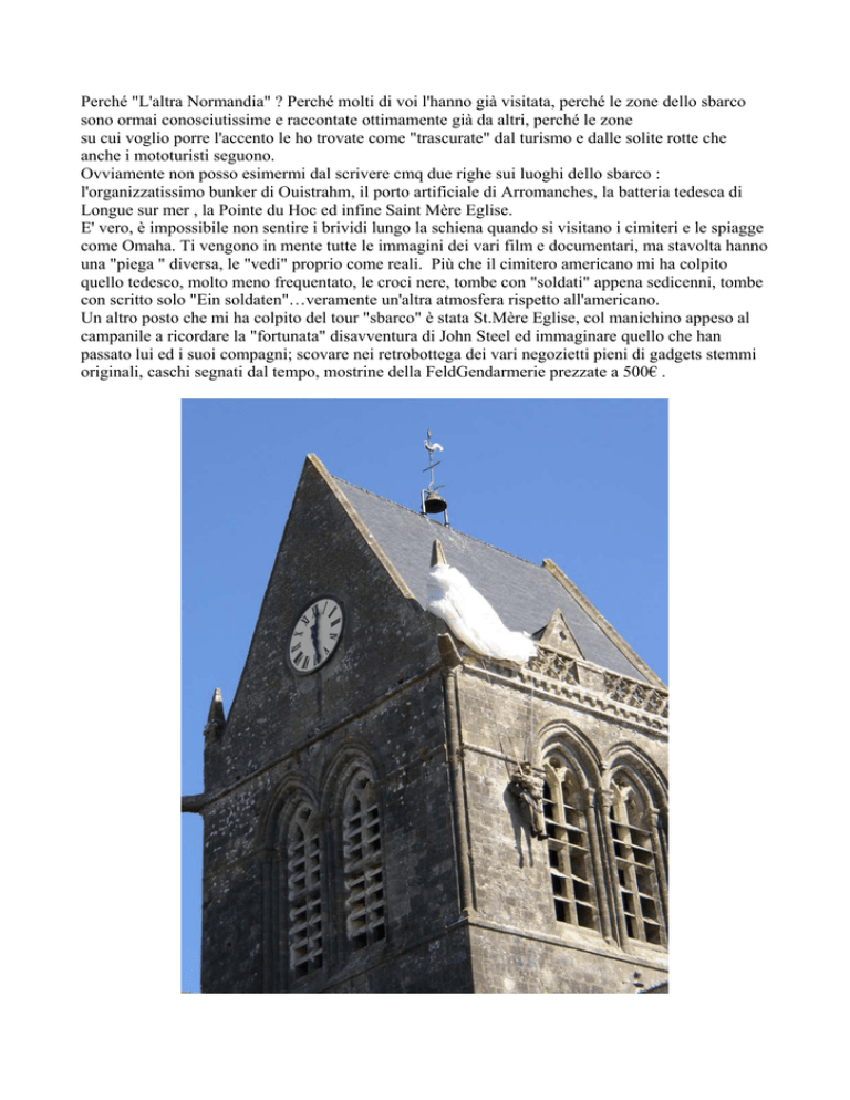 Perché "L'altra Normandia" ? Perché molti di voi l'hanno già visitata, perché le zone dello sbarco sono ormai conosciutissime e raccontate ottimamente già da altri, perché le zone su cui voglio porre l'accento le ho trovate come "trascurate" dal turismo e dalle solite rotte che anche i mototuristi seguono. Ovviamente non posso esimermi dal scrivere cmq due righe sui luoghi dello sbarco : l'organizzatissimo bunker di Ouistrahm, il porto artificiale di Arromanches, la batteria tedesca di Longue sur mer , la Pointe du Hoc ed infine Saint Mère Eglise. E' vero, è impossibile non sentire i brividi lungo la schiena quando si visitano i cimiteri e le spiagge come Omaha. Ti vengono in mente tutte le immagini dei vari film e documentari, ma stavolta hanno una "piega " diversa, le "vedi" proprio come reali. Più che il cimitero americano mi ha colpito quello tedesco, molto meno frequentato, le croci nere, tombe con "soldati" appena sedicenni, tombe con scritto solo "Ein soldaten"…veramente un'altra atmosfera rispetto all'americano. Un altro posto che mi ha colpito del tour "sbarco" è stata St.Mère Eglise, col manichino appeso al campanile a ricordare la "fortunata" disavventura di John Steel ed immaginare quello che han passato lui ed i suoi compagni; scovare nei retrobottega dei vari negozietti pieni di gadgets stemmi originali, caschi segnati dal tempo, mostrine della FeldGendarmerie prezzate a 500€ . L'altra Normandia è invece diversa, è fatta di normalità e di sapori e profumi locali.. Una giornata l'abbiamo dedicata alla visita dell'Abbazia di Jumieges ed alle falesie. L'abbazia è splendida, di epoca medievale somiglia molto alla nostra San Galgano, però tenuta meglio (magari perché si paga..), situata nella valle della Senna che da Rouen scorre verso il mare. Incredibili le falesie di Yport ed Etretat . Anche se il secondo luogo è più famoso perché sono le più alte, a noi è piaciuto molto di più Yport : più caratteristico il paesello, meno turismo di massa, con la bassa marea si può camminare ai piedi delle falesie ed incontrare solo poche persone, per lo più anziani o bambini in cerca di "crevettes" (granchietti ?!?) sul fondo umido abbandonato per qualche ora dal mare. Un altro giro l'abbiamo dedicato alla scoperta delle Fromagerie e delle Cave di Sidro e Calvados. Conoscete il formaggio Camembert ?!? Bene, noi ci siamo recati al paese da cui prende il nome dove nel lontano 1870 la sciùra Marie Harel l'ha inventato. Visitato il piccolo museo creato dalla President non abbiamo saputo resistere all'assaggio del sopracitato e dopo aver fatto una passeggiata fino alla fattoria dove ha vissuto e lavorato Marie Harel, ci siamo "scofanati" due bei piatti di formaggi tipici della zona, che oltre al Camembert sono il Livarot ed il Pont l'Eveque. Divini ! Poi col sidro..mamma mia.. Indagando con la signora che gestisce questa specie di "spaccio" della President ci siam fatti indicare una fattoria dove il Camembert viene ancora fatto come un tempo. Ci siamo fiondati lì immediatamente ma la signora padrona della fattoria era in "pausa pranzo". Ci ha cmq concesso di visitare la fattoria e di vedere attraverso dei finestroni i vari passaggi della lavorazione del formaggio. Via di lì abbiamo fatto tappa a Livarot, dove appunto producono un altro ottimo formaggio ed abbiamo visitato il locale caseificio. Anche qui siamo giunti con un pizzico di ritardo, infatti la produzione e lavorazione del formaggio era appena terminata e gli addetti stavano iniziando a lavare i macchinari. Cmq è stato interessantissimo anche qui, si è guidati attraverso un percorso nei vari reparti e vengono spiegati i vari step della lavorazione di questo formaggio. Dopo i caseifici è stato il turno delle cantine. La zona dei Pays d'Auge ne è piena ma noi fortunelli siam finiti da una simpaticissima signora che ci ha tenuto lì per un'ora a spiegare solo a noi due tutta la lavorazione del Sidro, del Pommeu e del Calvados. Non si discosta molto da quella del vino, ovviamente al posto dell'uva ci sono le mele. In breve vi dirò che per il Sidro basta un anno di invecchiamento, per il Pommeu (che è un aperitivo) un anno e mezzo, per il Calvados (che è tipo Cognac o Brandy) ci vogliono dai 5 ai 12 anni. Ovviamente non potevo esimermi dal venir via con un'ottima bottiglia di Calvados 12 anni ! Come vi ho anticipato non abbiamo incontrato molta gente durante la visita in questi luoghi, ma sono tappe che un mototurista-contemplatore-enogastronomico non deve mancare.. Dopo sei giorni ci siamo spostati ancora più a nord, nella penisola del Cotentin, zona di Cherbourg. Ero stato incuriosito da un articolo di una rivista di mototurismo a visitare queste zone e credetemi, ne è valsa veramente la pena. Fuori dalle rotte del turismo di massa o classico di Normandia, questa penisola è ancora un luogo selvaggio, adattissimo al relax, ai giri in bici od al trekking. Le piccole stradine stile passi alpini lì sono nella norma, si incontra una macchina qua e là, meno ancora qualche moto, forse più camper. Guardando la cartina ad est di Cherbourg abbiamo visitato il faro di Gatteville, vicino a Barfleur, alto 76mt e ben 369 gradini !! Però splendido essere in cima.. Il mare qui, al contrario della costa dello sbarco o delle zone di Deauville etc..è limpidissimo, sembra quello della Sardegna. Ad ovest di Cherbourg invece, che è la zona dove abbiamo soggiornato siamo stati a Goury e zone circostanti. Dire che Goury è incantevole è dire poco…i francesi dicono "tres jolie"..ecco, è Joliissssimo !! E' un piccolo borgo con case di pietra , col bel faretto, con un porticciolo piccolo piccolo che con la bassa marea ha le barche in secca, con la alta non solo le barche galleggiano, ma non vedi quasi più la banchina del porto. La marea infatti qui sale di ben 6 metri !!! Il giornalista rivista scriveva di non perdere il tramonto al faro di Goury, ebbene noi siamo riusciti a perdercelo per ben due volte (ma solo i