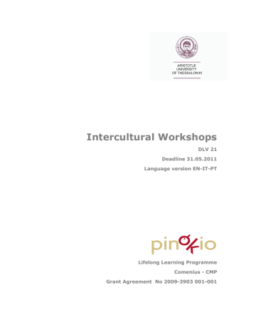 Intercultural Workshops DLV 21 Deadline 31.05.2011 Language version EN-IT-PT Lifelong Learning Programme Comenius - CMP Grant Agreement No 2009-3903 001-001 Author: Prof. Sofia Gavriilidis Scientific Committee Member and WP6 Leader University of Thessaloniki, Greece The Part Three of this document has been done with the collaboration of all the participants in the Intercultural Workshop © for the whole P.IN.O.K.I.O. project: Fondazione Nazionale Carlo Collodi © for the present P.IN.O.K.I.O. project product: the partner/s that produced it (see Author as indicated in the document) Any document produced by the P.IN.O.K.I.O. project can be downloaded free of charge and by previously signing in for personal use and for personal study purpose only. It is strictly forbidden to copy, reproduce, translate, distribute it as a whole or in parts, even in a school environment or scientific/scholar environment for any purpose and use including commercial or work purposes without authorization. For authorization requests, please turn to the Fondazione Nazionale Carlo Collodi, [email protected]. "This project has been funded with support from the European Commission. This document reflects the views only of the authors, and the Commission cannot be held responsible for any use which may be made of the information contained therein." Intercultural Workshops EN Version 3 Contents I. Part one Preface or The value of narration in the life of the Intercultural Workshop 6 II. Part two Intercultural Workshop: doing together, learning together 1. Why an Intercultural Workshop? Brief Introduction 11 2. Objectives of the Intercultural Workshop 2.1. General objectives: key-skills 12 2.2. Specific objectives 12 3. Methodological proposals 3.1. The “project method” 13 3.2. Phases of the “project method” 13 3.3. “Project method” and Intercultural Workshops 14 4. Organisations of the Intercultural Workshop 15 5. Proposed activities 15 Bibliography 23 III. Part three 1. P.IN.O.K.I.O.'s testing activity in Italy, Portugal, Switzerland and United Kindom 28 2. Final Considerations 66 4 Part one 5 Preface or The value of narration in the life of the Intercultural Workshop Sofia Gavriilidis Aristotle University of Thessaloniki (GR) In his book Mimesis: The Representation of Reality in Western Literature, which has caused a lot of discussion, Erich Auerbach contrasts two narrative modes: the one of the Odyssey and the other of the Bible, which represent, as he claims, the two basic styles of narration: the first one is characterized by the explicit statement, the clearness of monosemy and the restriction of human issues, while the second one by the projection of some parts and the obscurity of others, the evocativeness of the allusion, the polysemy, the need of interpretation. Alessandro Portelli (2009), on the occasion of this specific reasoning of Erich Auerbach, mentions in an article (which defends the value and reliability of oral sources in historiography) that there are two modes of “thinking”: the mode of Ancient Athens and the mode of Jerusalem. The mode of Ancient Athens, which has legated the method adopted, tried and brought out by the philosophers, means to make a logical reasoning, to clarify amphisemies. The mode of thinking of Jerusalem, which has legated the Bible, means narration of a story. Without underestimating documentation as a necessary process in the transfer of informative material, Portelli defends the value of narrating a story, not only as a source of information but as a parameter of the interpretation of this information too. In this way he invites us to think of narration as an action, not limited to information and reason, but open to new interpretations, capable of enveloping the information in the particular personal way of talking and feeling of everyone who takes part and interacts, meaning the narrator and the auditor or auditors, during the narration. Because narration is a way of communication and the auditor has an important role to play in its structure. Interaction between the narrator and the auditor is immediate and vivid. It assumes a unique personal 6 character that the specific actual conditions form. This is the reason why oral narration, or exchange of narrations, surpasses a text’s lecture. By the early 1960’s, but mostly through his recent work (1990; 1999; 2003), Jerome Bruner had set off narration, as a parameter of knowledge, thoughts and feelings, as a particular mode of thinking and argumenting, innate of the human nature. The narrative mode of thinking, which, as he points out (1990), occurs when the thought follows the mechanism of narration, coexists with the scientific, rationalistic though, but has a different function. Through scientific thought, which is necessary but not enough so that we understand the world, we explain issues and events, which we verify based on specific criteria and on “cause and effect” relationships. The narrative mode of thinking, or the narrative construal of reality, is consequently the way we structure our knowledge about the world and the human behaviour, the way of interpreting our experiences and of giving a meaning to them. In order that Bruner (1999) replies to the questioning: “what does it take to create a nurturing school culture that empowers the young effectively to use the resources and opportunities of the broader culture” he suggests the practice of “mutual learning cultures”. He claims that school environment is a place suitable “in consciousness raising about the possibilities of communal mental activity and as a means for acquiring knowledge and skill” because group activities are characterized by “mutual sharing of knowledge and ideas, mutual aid in mastering material, division of labor and exchange of roles”. In case that narrative either of a well-known story or of an experience is scheduled within the framework of “mutual learning cultures”, the narrator/pupil, apart fr