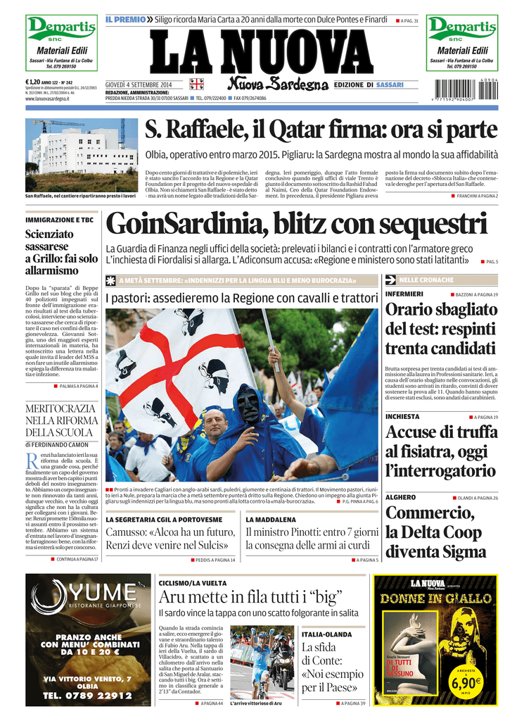 » IL PREMIO Siligo ricorda Maria Carta a 20 anni dalla morte con Dulce Pontes e Finardi € 1,20 ANNO 122 - N O 242 Spedizione in abbonamento postale D.L. 24/12/2003 N. 353 CONV. IN L. 27/02/2004 n. 46 www.lanuovasardegna.it GIOVEDÌ 4 SETTEMBRE 2014 ■ A PAG. 31 EDIZIONE DI SASSARI REDAZIONE, AMMINISTRAZIONE: PREDDA NIEDDA STRADA 30/31 07100 SASSARI ■ TEL. 079/222400 ■ FAX 079/2674086 y(7HB5J2*TKOKKR( +[!"!}!"!& S. Raffaele, il Qatar firma: ora si parte Olbia, operativo entro marzo 2015. Pigliaru: la Sardegna mostra al mondo la sua affidabilità San Raffaele, nel cantiere ripartiranno presto i lavori immigrazione e tbc Dopo cento giorni di trattative e di polemiche, ieri è stato sancito l’accordo tra la Regione e la Qatar Foundation per il progetto del nuovo ospedale di Olbia. Non si chiamerà San Raffaele - è stato detto - ma avrà un nome legato alle tradizioni della Sar- degna. Ieri pomeriggio, dunque l’atto formale conclusivo quando negli uffici di viale Trento è giunto il documento sottoscritto da Rashid Fahad al Naimi, Ceo della Qatar Foundation Endowment. In precedenza, il presidente Pigliaru aveva posto la firma sul documento subito dopo l’emanazione del decreto «Sblocca Italia» che conteneva le deroghe per l’apertura del San Raffaele. ■ FRANCHINI A PAGINA 2 GoinSardinia, blitz con sequestri Scienziato sassarese La Guardia di Finanza negli uffici della società: prelevati i bilanci e i contratti con l’armatore greco a Grillo: fai solo L’inchiesta di Fiordalisi si allarga. L’Adiconsum accusa: «Regione e ministero sono stati latitanti» allarmismo A metà settembre: «indennizzi per la lingua blu e Meno burocrazia» Dopo la “sparata” di Beppe Grillo nel suo blog che più di 40 poliziotti impegnati sul fronte dell’immigrazione erano risultati al test della tubercolosi, interviene uno scienziato sassarese che cerca di riportare il caso nei confini della ragionevolezza. Giovanni Sotgiu, uno dei maggiori esperti internazionali in materia, ha sottoscritto una lettera nella quale invita il leader del M5S a non fare un inutile allarmismo e spiega la differenza tra malattia e infezione. I pastori: assedieremo la Regione con cavalli e trattori MERITOCRAZIA NELLA RIFORMA DELLA SCUOLA infermieri ■ BAZZONI A PAGINA 19 Orario sbagliato del test: respinti trenta candidati inchiesta ■ A PAGINA 19 Accuse di truffa al fisiatra, oggi l’interrogatorio di FERDINANDO CAMON R ■ CONTINUAA PAGINA 17 nelle cronache Brutta sorpresa per trenta candidati ai test di ammissione alla laurea in Professioni sanitarie. Ieri, a causa dell’orario sbagliato nelle convocazioni, gli studenti sono arrivati in ritardo, convinti di dover sostenere la prova alle 11. Quando hanno saputo di essere stati esclusi, sono andati dai carabinieri. ■ PALMAS A PAGINA 4 enziha lanciatoierila sua riforma della scuola. È una grande cosa, perché finalmente un capo del governo mostradiaver ben capitoi punti deboli del nostro insegnamento. Abbiamo un corpo insegnante non rinnovato da tanti anni, dunque vecchio, e vecchio oggi significa che non ha la cultura per collegarsi con i giovani. Bene: Renzi promette 150mila nuovi assunti entro il prossimo settembre. Abbiamo un sistema d’entrata nel lavoro d’insegnante farraginoso: bene, con la riformasientreràsoloperconcorso. ■ PAG. 5 ■ ■ Pronti a invadere Cagliari con anglo-arabi sardi, puledri, giumente e centinaia di trattori. Il Movimento pastori, riuni- to ieri a Nule, prepara la marcia che a metà settembre punterà dritto sulla Regione. Chiedono un impegno alla giunta Pigliaru sugli indennizzi per la lingua blu, ma sono pronti alla lotta contro la «mala-burocrazia». ■ P.G. PINNA A PAG. 6 LA SEGRETARIA CGIL A PORTOVESME la maddalena Camusso: «Alcoa ha un futuro, Il ministro Pinotti: entro 7 giorni Renzi deve venire nel Sulcis» la consegna delle armi ai curdi ■ PEDDIS A PAGINA 14 ■ A PAGINA 5 ciclismo/la vuelta Aru mette in fila tutti i “big” Il sardo vince la tappa con uno scatto folgorante in salita Quando la strada comincia a salire, ecco emergere il giovane e straordinario talento di Fabio Aru. Nella tappa di ieri della Vuelta, il sardo di Villacidro, è scattato a un chilometro dall’arrivo nella salita che porta al Santuario di San Miguel de Aralar, staccando tutti i big. Ora è settimo in classifica generale a 2’13” da Contador. ■ APAGINA44 ITALIA-OLANDA La sfida di Conte: «Noi esempio per il Paese» L’arrivo vittorioso di Aru ■ A PAGINA 39 alghero ■ OLANDI A PAGINA 26 Commercio, la Delta Coop diventa Sigma Lettere e commenti GIOVEDÌ 4 SETTEMBRE 2014 LA NUOVA SARDEGNA 17 ■ Le lettere non devono superare le 1500 battute e non saranno pubblicate se prive di nome, cognome, telefono e indirizzo dell'autore. ■ Possono essere inviate via fax al numero 079 2674086 o per posta elettronica all'indirizzo email: [email protected] educazione e lavoro la parola ai lettori di FERDINANDO CAMON La meritocrazia al centro della riforma della scuola R enzi ha lanciato ieri la sua riforma della scuola. È una grande cosa, perché finalmente un capo del governo mostra di aver ben capito i punti deboli del nostro insegnamento. Abbiamo un corpo insegnante non rinnovato da tanti anni, dunque vecchio, e vecchio oggi significa che non ha la cultura per collegarsi con i giovani. Bene: Renzi promette 150mila nuovi assunti entro il prossimo settembre. Abbiamo un sistema d’entrata nel lavoro d’insegnante farraginoso, senza una vera selezione: bene, con la riforma si entrerà solo per concorso. Abbiamo una marea di supplenti, il che vuol dire insegnamenti spezzettati e non-coerenti nel corso dell’anno. Bene, le supplenze saranno abolite. Abbiamo sempre avuto, dalla nascita della repubblica, una carriera degli insegnanti fondata sugli scatti d’anzianità: un insegnante guadagna di più man mano che invecchia. Un’assurdità totale, perché man mano che invecchia, invecchia anche la sua cultura, e quindi insegna peggio.