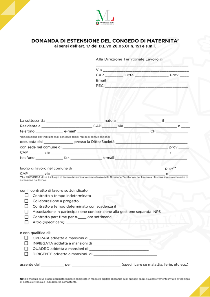 domanda di estensione del congedo di maternita