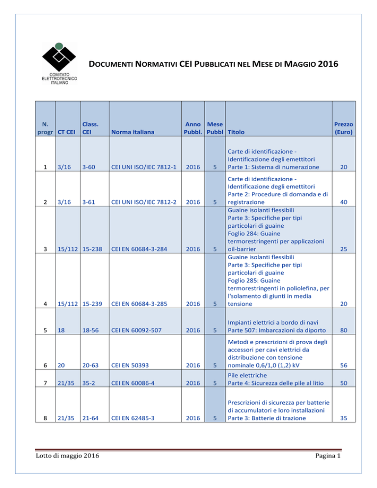 documenti normativi cei pubblicati nel mese di maggio