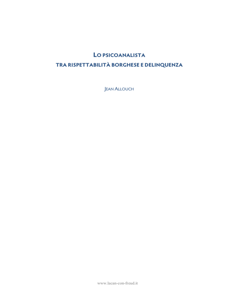Lo psicoanalista tra rispettabilità borghese e - Lacan-con