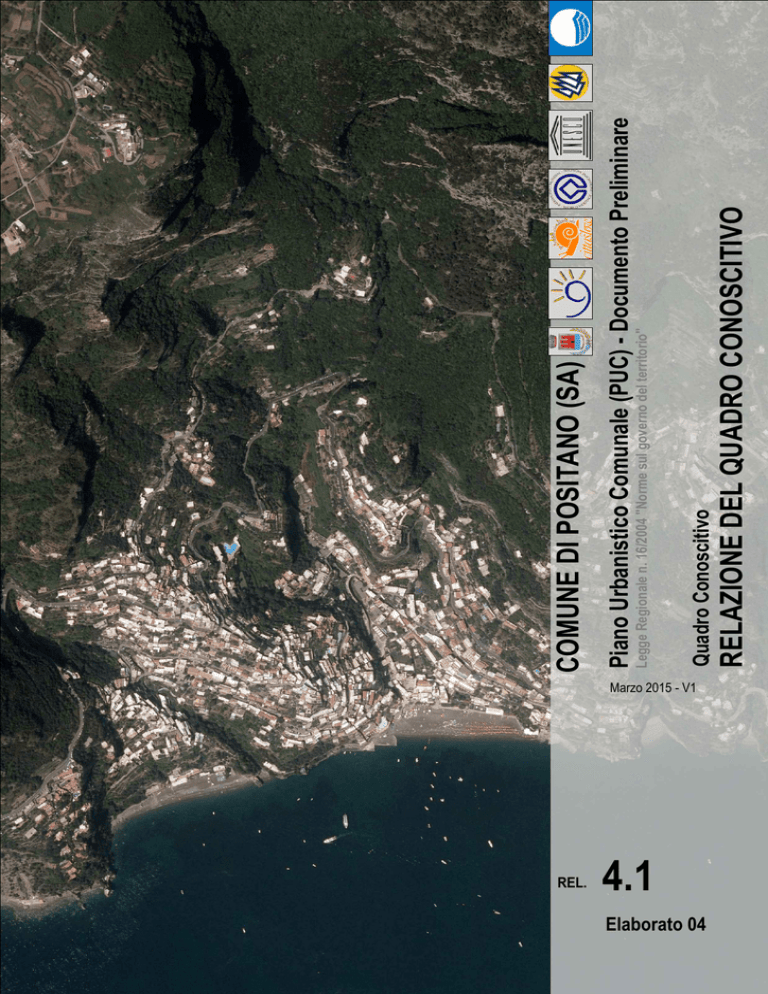Marzo 2015 - V1 REL. 4.1 Elaborato 04 RELAZIONE DEL QUADRO CONOSCITIVO Quadro Conoscitivo Legge Regionale n. 16/2004 "Norme sul governo del territorio" Piano Urbanistico Comunale (PUC) - Documento Preliminare COMUNE DI POSITANO (SA) Piano Urbanistico Comunale (PUC) Documento Preliminare Legge Regionale n. 16 del 2004 e s.m.i. Relazione del Quadro Conoscitivo 12 marzo 2015 REL 4.1 - Relazione Quadro Conoscitivo -1- Piano Urbanistico Comunale (PUC) Documento Preliminare Comune di Positano (SA) RELAZIONE DEL QUADRO CONOSCITIVO COMUNE DI POSITANO Via Marconi, 111 – Positano (SA) Tel. (+39) 089 8122511 Fax (+39) 089 811122 Il Sindaco Michele DE LUCIA Il Segretario Dott. Pasquale MARRAZZO Il Responsabile del Settore Urbanistica Ing. Raffaele FATA GRUPPO DI LAVORO Progettisti Architetto Antonio OLIVIERO 12 marzo 2015 REL 4.1 - Relazione Quadro Conoscitivo -2- Piano Urbanistico Comunale (PUC) Documento Preliminare Comune di Positano (SA) RELAZIONE DEL QUADRO CONOSCITIVO Sommario PREMESSA ...................................................................................................................................................4 QUADRO NORMATIVO E DI PIANIFICAZIONE...........................................................................................7 1. LA STRUMENTAZIONE URBANISTICA SOVRAORDINATA ...........................................................8 1.1 IL PIANO TERRITORIALE REGIONALE ...................................................................................8 1.2 IL PIANO URBANISTICO TERRITORIALE DELL’AREA SORRENTINO AMALFITANA .........10 1.3 IL PIANO DI ASSETTO IDROGEOLOGICO ............................................................................11 1.4 IL PARCO REGIONALE DEI MONTI LATTARI .......................................................................12 1.5 IL PIANO TERRITORIALE DI COORDINAMENTO DELLA PROVINCIA DI SALERNO ..........13 2. LA STRUMENTAZIONE URBANISTICA COMUNALE ...................................................................21 2.1. IL PIANO REGOLATORE GENERALE VIGENTE ...................................................................21 2.2. I PIANI ATTUATIVI E SETTORIALI .........................................................................................25 QUADRO AMBIENTALE .............................................................................................................................31 3. IL SISTEMA AMBIENTALE E PAESAGGISTICO ...........................................................................32 4. LE RISORSE TERRITORIALI .........................................................................................................34 4.1. LE RISORSE CON VALENZA PAESAGGISTICA – NATURALISTICA ...................................34 4.2. LE RISORSE CON VALENZA CULTURALE – ARCHEOLOGICA ..........................................36 5. IL SISTEMA VINCOLISTICO ..........................................................................................................42 QUADRO ECONOMICO E DEL CAPITALE SOCIALE ..............................................................................43 6. LE DINAMICHE SOCIO – DEMOGRAFICHE .................................................................................44 6.1. LA POPOLAZIONE RESIDENTE.............................................................................................44 6.2. IL GRADO DI ISTRUZIONE .....................................................................................................53 6.3. LE ABITAZIONI ........................................................................................................................58 7. LE DINAMICHE SOCIO – ECONOMICHE ......................................................................................62 QUADRO MORFOLOGICO .........................................................................................................................71 8. IL SISTEMA INSEDIATIVO E RELAZIONALE ................................................................................72 8.1. L’ANALISI DEL SISTEMA INSEDIATIVO ................................................................................72 8.2. L’ANALISI DEGLI STANDARD URBANISTICI.........................................................................74 9. LE INFRASTRUTTURE A RETE ....................................................................................................78 9.1. LA RETE STRADALE ..............................................................................................................78 9.2. LA RETE DELLA MOBILITÀ LENTA........................................................................................78 9.3. LE RETI DEI SERVIZI ..............................................................................................................79 12 marzo 2015 REL 4.1 - Relazione Quadro Conoscitivo -3- Piano Urbanistico Comunale (PUC) Documento Preliminare Comune di Positano (SA) RELAZIONE DEL QUADRO CONOSCITIVO PREMESSA Il governo del territorio a livello comunale, in Campania, è esercitato, secondo quanto indicato nella Legge Urbanistica Regionale (LUR) n. 16/2004 “Norme sul Governo del Territorio”, LUR che ha innovato i principi e le modalità di pianificazione e le procedure di approvazione degli strumenti di disciplina territoriale e urbanistica alle diverse scale. Appare quindi utile fare alcune considerazioni relative alla nuova disciplina urbanistica che ha portato a sostanziali differenze dei cosiddetti “Piani di ultima generazione” rispetto agli ormai superati Piani Regolatori Generali. Le innovazioni in buona parte presenti nella nuova Legge Regionale, possono così sintetizzarsi: 1. Il passaggio dalla pianificazione territoriale urbanistica alla pianificazione ambientale. Mentre la pianificazione tradizionale si preoccupava di misurare i bisogni e li soddisfaceva (con la costante previsione di nuovi manufatti e col conseguente consumo di risorse), la pianificazione moderna antepone alla logica additiva ed e