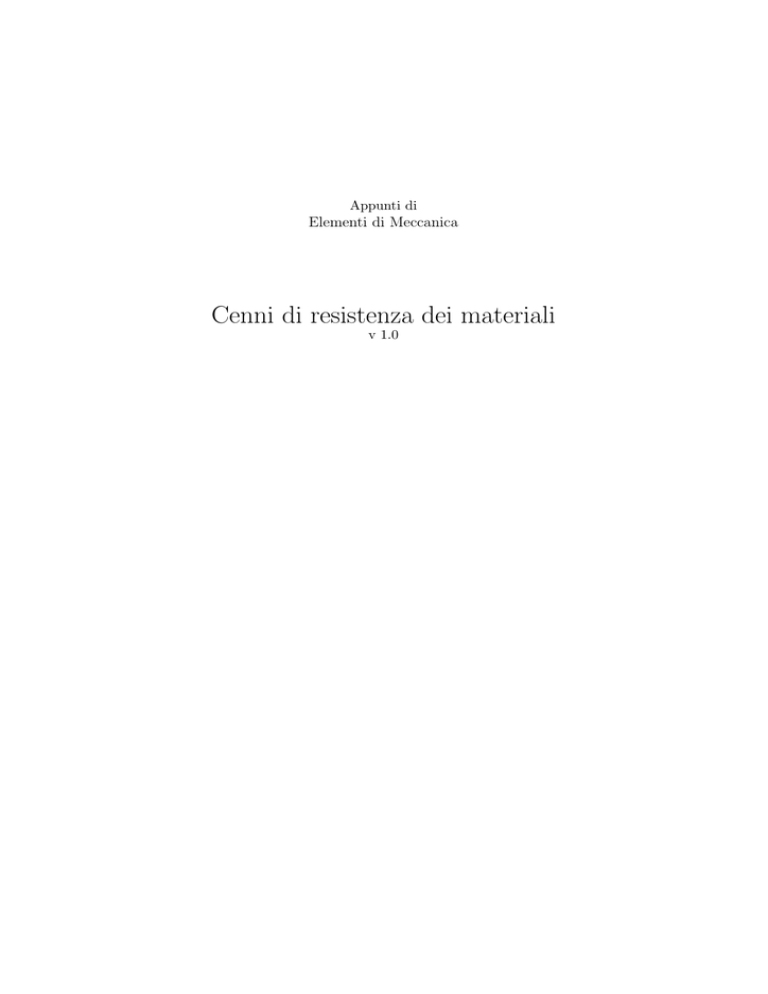 Appunti di Elementi di Meccanica Cenni di resistenza dei materiali v 1.0 Studio della trave Una parte delle strutture meccaniche può essere schematizzata, ai fini del calcolo strutturale, come una trave. Si definisce trave un corpo solido che presenta una dimensione molto maggiore rispetto alle altre due. Si definisce asse della trave una linea passante per la trave che si sviluppa lungo la sua dimensione maggiore. La definizione di trave è abbastanza generica, ma consente lo studio di una moltitudine di corpi di differente geometria. Si definisce lunghezza l della trave la lunghezza del suo asse, altezza h e larghezza b le altre due dimensioni trasversali rispetto alla lunghezza (vedi figura 1). Figura 1: Modello di una trave 1 Proprietà geometriche di una sezione Prima di affrontare lo studio della trave, si riportano alcune proprietà delle sezioni che saranno utilizzate successivamente. Le sezioni sono individuate dall’intersezione di un piano perpendicolare all’asse della trave e la trave stessa. Area L’area A di una sezione corrisponde alla misura della superficie che questa sezione occupa nel piano che la contiene. Viene genericamente espressa in mm2 . Baricentro e assi principali Il baricentro di una sezione è un punto notevole della sezione, è il punto d’incontro degli assi principali. L’asse della trave passa per il baricentro della 2 sezione. Esso giace sempre sugli eventuali assi di simmetria della sezione. Gli assi principali di una sezione sono sempre perpendicolari tra di loro e anch’essi coincidono con gli assi di simmetria della sezione, se presenti. Momento d’inerzia della sezione Il momento d’inerzia Ia di una sezione rispetto ad un asse a esprime numericamente la distribuzione della sezione rispetto all’asse stesso. Nella presente trattazione si considereranno momenti d’inerzia rispetto ai soli assi principali. Viene genericamente espresso in mm4 . Modulo di resistenza della sezione Il modulo di resistenza Wa di una sezione rispetto ad un asse a è dato dal rapporto tra il momento d’inerzia rispetto allo stesso asse e la semi-altezza (o semi-larghezza) della sezione rispetto a quell’asse. Viene genericamente espresso in mm3 . Sezioni notevoli Segue un elenco di alcune sezioni notevoli e di formule per il calcolo delle proprietà introdotte. Gli assi indicati nei disegni sono assi principali. A = hb Ix = bh3 12 Iy = hb3 12 Wx = bh2 6 Wy = hb2 6 A = hb − (h − 2s)(b − 2s) 3 Ix = bh3 12 − (b−2s)(h−2s)3 12 Iy = hb3 12 − (h−2s)(b−2s)3 12 Wx = bh2 6 − (b−2s)(h−2s)2 6 Wy = hb2 6 − (h−2s)(b−2s)2 6 2 A = π d4 4 Ix = π d64 4 Iy = π d64 3 Wx = π d32 3 Wy = π d32 2 2 4 4 4 4 A = π d4 − π (d−2s) 4 Ix = π d64 − π (d−2s) 64 Iy = π d64 − π (d−2s) 64 3 3 3 3 Wx = π d32 − π (d−2s) 32 Wy = π d32 − π (d−2s) 32 2 Casi di Saint Venant Saint Venant fu un matematico e fisico francese vissuto nel XIX◦ secolo che studiò la trattazione matematica di diversi fenomeni che hanno tuttora grande rilevanza ingegneristica (tra questi l’elasticità dei solidi e l’idraulica). Formulò una serie di equazioni che consente, sotto certe ipotesi, il calcolo dello stato di sollecitazione in una trave. Nonostante i recenti sviluppi dei calcolatori e dei metodi numerici, le formule di Saint Venant per la trave sono tuttora uno strumento indispensabile alla progettazione meccanica. Senza entrare eccessivamente nel dettaglio, si presenteranno alcuni i risultati di questo studio che hanno una maggiore applicazione dal punto di vista ingegneristico. Verrano affrontati i casi dell’azione assiale, della flessione pura e della torsione. 2.1 Azione assiale Si consideri una trave sollecitata alle estremità da una forza assiale N di trazione o compressione passante per l’asse della trave (vedi figura 2). I diagrammi delle azioni interne nella trave sono costanti; l’unico diagramma non 4 Figura 2: Trave soggetta ad azione assiale Figura 3: Andamento dello sforzo indotto nella sezione nullo è quello dell’azione assiale che vale per l’appunto N . Essendo l’azione nella trave costante, tutte le sezioni sono ugualmente sollecitate (eccetto quelle d’estremità, dove i carichi sono applicati). La sollecitazione è normale al piano contenente la sezione e costante (vedi figura 3), quindi lo sforzo σz vale N A e viene di conseguenza misurato in N/mm2 . Si noti che una forza di trazione (genericamente definita positiva) causa uno sforzo positivo. A seguito di questa forza applicata si verifica anche una variazione della lunghezza della trave, che può essere quantificata ricorrendo prima al calcolo della deformazione. La relazione tra sforzo e deformazione in questo caso vale σz = σz = Eεz dove E è il modulo di Young del materiale considerato. Il modulo di Young è espresso in N/mm2 . La deformazione a sua volta è definita come l − l0 l0 dove l è la lunghezza della trave e l0 ne è la lunghezza iniziale; εz è una grandezza adimensionale. Riassumendo le formule viste si può ricavare una εz = 5 Figura 4: Freccia di una trave soggetta ad azione assiale formula che esprime la freccia fz (variazione di lunghezza della trave rispetto alla dimensione iniziale, vedi figura 4) della trave fz = l − l 0 = 2.2 N l0 EA Flessione retta Si consideri una trave sollecitata alle estremità da una coppia Mf agente nel piano yz (vedi figura 5). I diagrammi delle azioni interne nella trave sono costanti; l’unico diagramma non nullo è quello del momento flettente che vale per l’appunto Mf . Essendo l’azione nella trave costante, tutte le sezioni sono ugualmente sollecitate (eccetto quelle d’estremità, dove i momenti sono applicati). La sollecitazione è normale al piano contenente la sezione ed ha un andamento a ‘farfalla’. Varia linearmente e si annulla in corrispondenza di un asse principale (vedi figura 6). Lo sforzo σz ha la seguente espressione σz = Mf y Ix e viene di conseguenza misurato in N/mm2 . Va 