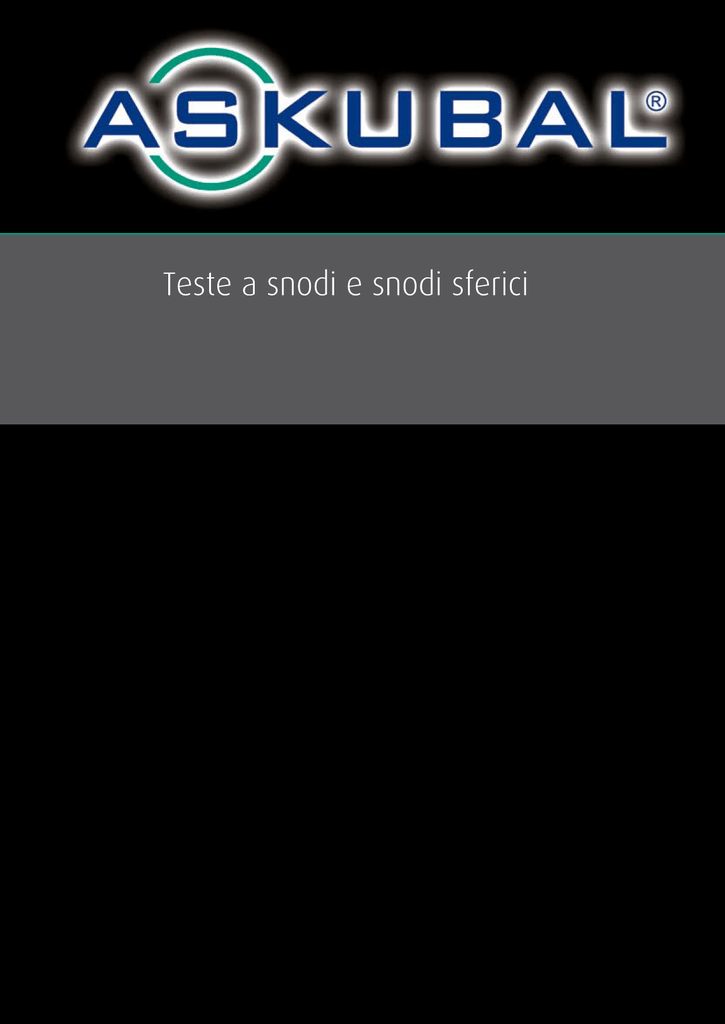 Teste a snodi e snodi sferici Qualität + Dynamik in Perfektion Teste a snodo ad alta resistenza Snodi sferici ad alta resistenza Manutenzione e lubrificazione p. 1-11 Istruzioni per il montaggio p. 1-11 Serie sportiva filettatura fine con foro di connessione ridotto di 2 mm soggetta a manutenzione versione 402 p. 1-38 Gioco del cuscinetto p. 1-9 Tolleranze p. 1-7 Serie acciaio inossidabile esenti da manutenzione DIN ISO 12240-4 p. 1-20 Serie acciaio inossidabile soggette a manutenzione DIN ISO 12240-4 p. 1-18 Serie pneumatica inossidabile esente da manutenzione quote di accoppiamento a norma DIN ISO 12240-5 p. 1-28 Serie pneumatica inossidabile soggetta a manutenzione quote di accoppiamento a norma DIN ISO 12240-5 p. 1-26 Serie sportiva filettatura fine soggetta a manutenzione versione 401 p. 1-38 Serie sportiva filettatura standard soggetta a manutenzione versione 400 p. 1-38 Serie acciaio inossidabile esente da manutenzione DIN ISO 12240-1 p. 1-48 Serie acciaio inossidabile soggetta a manutenzione DIN ISO 12240-1 p. 1-46 Serie sportiva soggetta a manutenzione p. 1-54 Snodi sferici 2RS impermeabilizzati esenti da manutenzione DIN ISO 12240-1 p. 1-65 Snodi sferici 2RS impermeabilizzati soggetti a manutenzione DIN ISO 12240-1 p. 1-64 Snodi sferici standard soggetti a manutenzione DIN ISO 12240-1 p. 1-63 Snodi sferici standard esenti da manutenzione DIN ISO 12240-1 p. 1-60 PROTEC Srl - Tel. 02.5760.7174 - fax 02.5760.7183 - [email protected] - www.protecsrl.com 2 Cuscinetti Sfere d’acciaio 3 Supporti 4 Perni folli e rotelle Dimensionamento delle teste a snodo e snodi sferici p. 1-4 Criteri di scelta p. 1-2 Basi tecniche Standard esenti da manutenzione DIN ISO 12240-4 p. 1-16 Standard soggette a manutenzione DIN ISO 12240-4 p. 1-14 Teste a snodo standard misure K Serie pneumatica inossidabile esente da manutenzione quote di accoppiamento a norma DIN ISO 12240-5 p. 1-24 Serie pneumatica inossidabile soggetta a manutenzione quote di accoppiamento a norma DIN ISO 12240-5 p. 1-22 Teste a snodo serie pneumatica Cuscinetto a rulli ASKUROL quote di accoppiamento a norma DIN ISO 12240-4 p. 1-32 Cuscinetto a sfere ASKUROL quote di accoppiamento a norma DIN ISO 12240-4 p. 1-30 Teste a snodo a sfere e a rulli Serie 2RS impermeabilizzata esente da manutenzione p.1-36 Serie 2RS impermeabilizzata soggetta a manutenzione p. 1-34 Teste a snodo esecuzioni speciali Cetop Serie BD Teste a snodo esente da manutenzione quote di serie BD accoppiamento secondo norme DIN ISO 12240-4 p. 1-40 Standard esente da manutenzione DIN ISO 12240-1 p. 1-44 Standard soggetta a manutenzione DIN ISO 12240-1 p. 1-42 Snodi sferici standard misure K Serie 2RS impermealizzata esente da manutenzione p. 1-52 Serie 2RS impermealizzata soggetta a manutenzione p. 1-50 Snodi sferici esecuzioni speciali Teste a snodo standard esenti da manutenzione DIN ISO 12240-4 p. 1-58 Teste a snodo standard soggette a manutenzione DIN ISO 12240-4 p. 1-56 Teste a snodo e snodi sferici standard misure E, G, W Versioni su misura PROTEC Srl - Tel. 02.5760.7174 - fax 02.5760.7183 - [email protected] - www.protecsrl.com Teste a snodo - Snodi sferici Qualität + Dynamik in Perfektion Teste a snodo ad alta resistenza Qualität + Dynamik in Perfektion Criteri di scelta Definizione Denominazione Testa a snodo ad alta resistenza DIN ISO 12240-4 Serie misure K K..3 fino K..50 NIRO DIN ISO 12240-5 Testa a snodo ad alta resistenza DIN ISO 12240-4 Serie misure K NIRO DIN ISO 12240-5 K..5-NIRO fino K..30-NIRO KI5-M4 fino K150 KI5-NIROM4 fino KI30-NIROM27x2 Acciaio su bronzina ad alta resistenza K..5-D fino K..50-D K..5-DNIRO fino K..30-DNIRO KI5-DM4 fino K150D KI5-DNIROM4 fino KI30-DNIROM27x2 Acciaio su tessuto metallico PTFE Caratteristiche d’impiego Condizioni d’impiego pesanti, carichi alterni con urti, da impiegare preferibilmente per grandi movimenti alternati, adatta per movimenti rotatori salvo verifica tecnica Condizioni di impiego generali, carichi con urti e monodirezionali, difficoltose condizioni tecniche di lubrificazione, movimenti oscillanti limitati a bassa velocità di strisciamento. Da impiegarsi in alternativa agli snodi con accoppiamento acciaio su bronzo nelle basse velocità di strisciamento Condizioni d’impiego con molte sollecitazioni, carichi alternati e difficili condizioni tecniche di lubrificazione. Da preferirsi nei movimenti di rotazione e adatta per alte velocità di strisciamento Testa a snodo Askurol Accoppiamento secondo DIN ISO 12240-4 Serie misure K KU..8 fino KU..16 K..20203 fino K..20206 Accoppiamento a rotolamento Testa a snodo ad alta resistenza Esecuzione speciale con impostazione e post-regolazione del gioco Guarnizioni 2RS K..8-STK2RS fino K..30-STK2RS Acciaio su bronzina ad alta resistenza Testa a snodo ad alta resistenza Esecuzione speciale con impostazione e post-regolazione del gioco Guarnizioni 2RS K..8-D2RS fino K..30-D2RS Acciaio su tessuto metallico PTFE Per condizioni d’impiego pesanti, carichi statici con urti e unidirezionali, in presenza di agenti esterni abrasivi (sporco, polvere, umidità ecc.) Acciaio su tessuto metallico PTFE Per condizioni di impiego semplici, carichi statici unilaterali, ridotti carichi alternati, adatta per movimenti rotatori salvo verifica tecnica Testa a snodo K..6-BD fino Quote di accoppiamen- K..12-BD to secondo DIN ISO 12240-4 Serie misure K 1-2 Accoppiamento PROTEC Srl - Tel. 02.5760.7174 - fax 02.5760.7183 - [email protected] - www.protecsrl.com Definizione Denominazione Accoppiamento Caratteristiche d’impiego Snodo sferico ad alta resistenza DIN ISO12240-1 Serie misure K G 3 fino G 50 S 3 fino S 50 Acciaio su bronzina ad alta resistenza Condizioni di impiego gravose, carichi alternati con urti, da impiegare preferibilmente per grandi movimenti alternati, adatta per movimenti rotatori salvo verifica tecnica Snodo sferico ad alta resistenza DIN ISO12240-1 Serie misure K G 5-D fino G 50-D S 5-D fino S 50-D Acciaio su tessuto metallico PTFE Condizioni di impiego generali, 