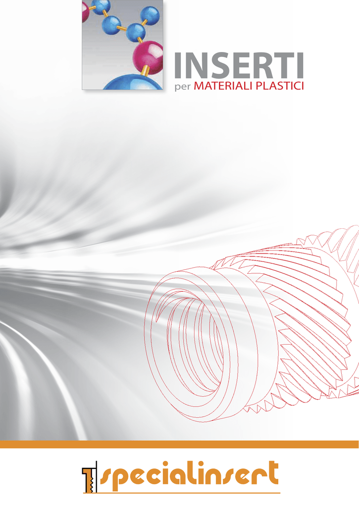 INSERTI per MATERIALI PLASTICI AZIENDA Specialinsert è un’azienda presente nel mondo dei fasteners da oltre 35 anni. Nasce nel 1974 per iniziativa di tre tecnici commerciali che, grazie alla loro esperienza nel settore dei sistemi di fissaggio, decidono di avviare l’attività di commercializzazione fasteners in proprio, trasformandola negli anni in produzione e commercializzazione. Con tre unità locali, tre depositi, uno stabilimento di produzione italiano, un ufficio studi ed un laboratorio prove, Specialinsert è in grado di fornire ai clienti soluzioni sempre più avanzate e adatte ai diversi problemi di fissaggio. La Specialinsert vanta una serie di proposte che spaziano dagli inserti tubolari filettati alle boccole per materie plastiche; dai filetti riportati alle boccole autofilettanti; dagli inserti per legno ai rivetti a strappo ed alle chiusure rapide a ¼ di giro. La produzione Specialinsert è interamente fatta in Italia nel suo stabilimento di Maerne. Il suo sistema aziendale è certificato dal 1997 presso l’ente certificatore ICIM. La mission Specialinsert è quella di affermarsi nel mercato come azienda in continua evoluzione ed innovazione tecnologica, questo per poter offrire ai clienti sempre più soluzioni e servizi al passo con i tempi. PRODOTTI LAMINATI Inserti per laminati profilati tubolari CORPI SOLIDI Inserti per corpi pieni legno metallo PLASTICA Inserti per materie plastiche COMPOSITI Inserti per materiali compositi INDICE B-LOK® B-LOK® / INSERT-PLAST.............................................pag. 04 • Serie 812 - 815 • Serie 821 - 823 • Serie 841 - 842 • Serie Insert-Plast (tipo standard) • Serie IPR2 MUBUX®.............................................................................pag. 10 • Serie 850 - 852 • Serie 856 - 857 S-LOK® / INSERT-PLAST NT.......................................pag. 13 • Serie 860 - 861 - 862 • Serie 863 - 864 • Serie 853 - 854 - 855 • Serie Insert-Plast (tipo senza intaglio) • Serie 866 - 867 • Serie 858 - 859 • Serie 60_ /C - 62_ /C • Serie Es • Serie Es CH ENSAT®...............................................................................pag. 23 • Serie 302 • Serie 303 • Serie 305 • Serie 307 - 308 • Serie 309 • Serie 337 - 338 • Serie 347 - 348 INSERT PLAST MUBUX® S-LOK® ES ENSAT® TABELLA DI CONVERSIONE.....................................pag. 33 INSERTI PER LAMINATI PLASTICI..........................pag. 34 Nel costante impegno di migliorare i propri prodotti Specialinsert si riserva il diritto di modificare le caratteristiche tecniche e costruttive senza preavviso. Proprietà e diritti del documento sono riservati. Ne è vietata la riproduzione, anche parziale e la diffusione a terzi senza autorizzazione. 4 INSERTI PER MATERIALI PLASTICI | B-LOK® / INSERT-PLAST INSERTI FILETTATI Inserimento a pressione ed espansione. Il B-Lok® e l’Insert-Plast sono inserti filettati con diversi profili esterni, che garantiscono un fissaggio ottimale in tutti i tipi di componenti plastici preferibilmente stampati. L’IPR2 è un inserto filettato con una geometria esterna speciale in grado di sopportare alti carichi a torsione. L’inserimento di queste serie avviene mediante pressione con ancoraggio ad espansione. 2 1 b-lok® Installazione 3 L’inserto deve essere posizionato a filo della superficie di montaggio (1), il foro (2) sul particolare da collegare dovrà essere dimensionato correttamente, al fine di creare un contrasto con la testina della boccola, evitando l’estrazione della stessa per effetto leva. La lunghezza della vite deve essere dimensionata in modo da utilizzare tutta la parte utile di filetto della boccola ottenendo la massima espansione. Accertarsi che la vite non vada a contatto con il fondo del foro (3), per evitare la fuoriuscita della boccola. 1-2 La predisposizione della sede, dimensione foro e spessore parete, dipendono dal materiale utilizzato. Si sconsigliano svasature o smussi. Per le misure si rimanda alle specifiche schede tecniche. Per ottenere un corretto impiego del prodotto, è consigliabile effettuare prove di montaggio per determinare l’esatto diametro di foratura. La profondità del foro dovrà essere superiore alla lunghezza della boccola. Predisporre la sede durante lo stampaggio e con l’ausilio di un apposito punzone inserire la boccola mediante pressione. Evitare punzoni con astine guida per permettere il restringimento della boccola in fase di inserimento. 3 1 Con l’inserimento della vite si ottiene l’espansione della boccola, permettendo l’ancoraggio alla parete del foro. La tensione residua, genera sulla vite un leggero effetto autofrenante. Resistenza indicativa all’estrazione (KN) 4 3 PA, POM, PC, PVC, PMMA 2 ABS, PS, CA, PP, PPO, PVC 2 1 0 M2 M3 M4 M5 M6 M8 B-Lok® filetto interno Si consigliano test pratici. Valori indicativi, applicabili solo se la vite è inserita per almeno il 50% della sua lunghezza nell’inserto filettato. 3 5 Serie 812 - 815 INSERTI FILETTATI AD ESPANSIONE BOCCOLE APPLICAZIONE Su materiali termoplastici. INSERIMENTO A pressione con ancoraggio ad espansione. PRODOTTO Filettatura metrica Diametro esterno Lunghezza totale Spessore minimo parete Diametro foro (d1) (d2) (L) (S) (d3+0.04 0 ) 812 0020.80 M2 3.45 4.0 2 1.6 3.2 813 0025.80 M 2.5 4.3 4.8 3 2.0 4.0 813 0030.80 M3 4.3 4.8 3 2.0 4.0 813 0035.80 M 3.5 5.1 6.4 3 2.4 4.8 814 0040.80 M4 5.9 8.0 4 2.8 5.6 815 0050.80 M5 6.7 9.5 5 3.2 6.4 815 0060.80 M6 8.3 12.7 5 4.0 8.0 815 0080.80 M8 9.9 12.7 5 4.8 9.5 CODICE S** R*** S ** standard Numero Alette R *** a richiesta • MATERIALE Ottone • FINITURA Allo stato naturale • TOLLERANZE ISO 2768-m •FILETTATURA d1 ISO 6H •ESEMPIO DI DESIGNAZIONE Inserto filettato in ottone tipo B-Lok® ad alette filettatura M 5: 815 0050.80 Per ottenere un corretto impiego del prodotto è consigliabile effettuare prove di montaggio per determinare l’esatto diametro di foratura. d1 d2 Le dimensioni sono indi