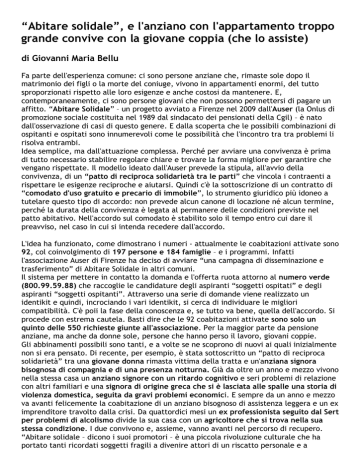“Abitare solidale”, e l`anziano con l`appartamento troppo grande