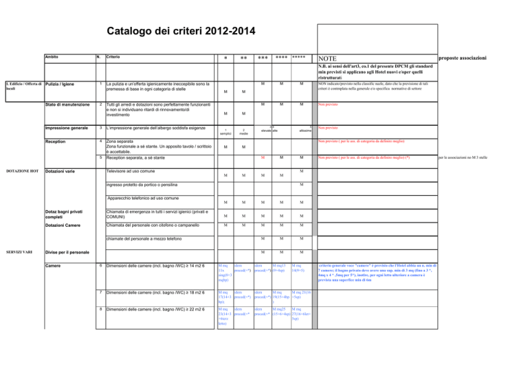 criterio generale voce "camere" è previsto che l'Hotel abbia un n. min di