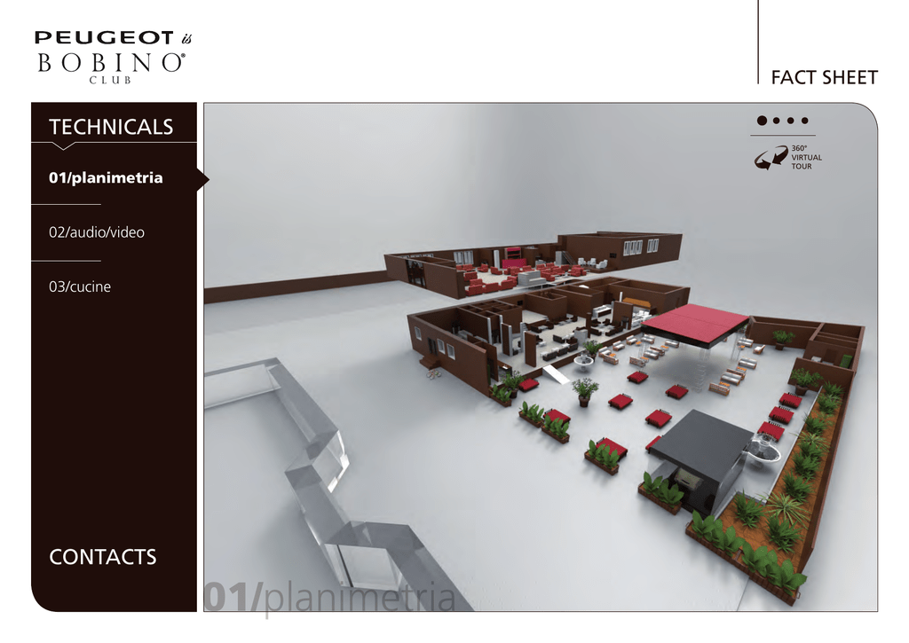 FACT SHEET TECHNICALS 360° VIRTUAL TOUR 01/planimetria 02/audio/video 03/cucine CONTACTS 01/planimetria FACT SHEET TECHNICALS 01/planimetria SERVIZI IGENICI CUCINA 02/audio/video BUFFET 03/cucine PIANO TERRA\GIARDINO ESTERNO CAMBUSA BAR 3.3 8.5 GUARDAROBA CASSA CONSOLE SCALE 10 6 MAGAZZINO USCITA D’EMERGENZA RAMPA DISABILI USCITA/ENTRATA LIBERA *le misure sono espresse in metri (m) CONTACTS 32.5 20.5 FACT SHEET TECHNICALS 01/planimetria SERVIZI IGENICI CUCINA 02/audio/video CAMBUSA BUFFET 03/cucine BAR 8.9 GUARDAROBA 7.3 CASSA CONSOLE 5.3 SCALE 2.5 8.8 MAGAZZINO 5.2 USCITA D’EMERGENZA 16.8 5.6 12.7 22.8 RAMPA DISABILI USCITA/ENTRATA LIBERA *le misure sono espresse in metri (m) 11.7 14.5 CONTACTS 5.4 PRIMA SALA\PIANO TERRA 15.3 SALA PURPLE\PRIMO PIANO FACT SHEET TECHNICALS PIANO TERRA\PARCHEGGIO 01/planimetria PARCHEGGIO AUTO/BUS PARCHEGGIO BICI 02/audio/video PARCHEGGIO MOTO PARCHEGGIO DISABILI 03/cucine CUSTODE USCITA D’EMERGENZA UFFICI RAMPA DISABILI USCITA/ENTRATA LIBERA *le misure sono espresse in metri (m) CONTACTS FACT SHEET TECHNICALS 01/planimetria 02/audio/video 03/cucine PRIMO PIANO: Amplificazione: Samson sx 2800 Jbl mpx 1200 Australian monitor ah 1600 Diffusori: 4 nexo ps 15 Luci: Regia luci: operator I elation 10 par led 4 teste mobili Robe spot 150xt 2 teste mobili led adj xmove 25r 2 teste mobili led euro led tmh3 CENTRALE: Amplificazione: Nexo mx amp 4x4 Yamaha p7000s Qsc mx 1500a Processore DBX driverack numero2: EV Q66 Diffusori: 4 nexo ps 10 r2 8 EV 2 Yamaha IF2112as 2 sub nexo LS 600 Consolle DJ: 1 DJM 800 pioneer 2 CDJ 2000 pioneer Luci: Regia luci: operator I elation 9 par led 4 teste mobili Robe spot 150xt 2 teste mobili robe spot 250xt 2 teste mobili robe wash 250xt 2 strobo 2 neon UV 1 barra led CONTACTS 02/audio/video ESTERNO: Amplificazione: Numero 3: Crown xti 4000 Diffusione: Tettosuono Luci: Regia luci: operator I elation 17 par led 4 teste mobili Robe wash 250xt VIDEO: Sala 1 piano: 1 schermo TV 60” Interno: 3 proiettori BENQ SP840 2 schermi TV 60” 2 lettore DVD / usb RADIOMICROFONI: 1 shure PG58 FACT SHEET TECHNICALS 01/planimetria 02/audio/video 03/cucine • Piastra induzione marca inox 4 fuochi 5.5 kw cad • Piastra elettrica mezza liscia mezza striata • 1 bollitore elettrico 90×40cm • 2 friggitrici elettriche • 1 forno elettrico ventilato secco • 1 forno elettrico convezione + misto vapore • 1 cella frigo positiva 2×2 mt • 2 pozzetti negativi • 1 frizzer colonna negativo • 1 frigo colonna positivo • 1 banco frigo positivo • 1 affettatrice • 1 impastatrice CONTACTS 03/cucine FACT SHEET TECHNICALS 01/planimetria 02/audio/video Bobino Club Alzaia Naviglio Grande 116 Milano 03/cucine [email protected] 02.3655.9070 [Lun-Sab] 345.3385.882 [Dom] Come raggiungerci Metropolitana: MM2 Porta Genova Tram: linea 2 Bus: linee 74 - 325 - 351 www.bobino.it CONTACTS CONTACTS