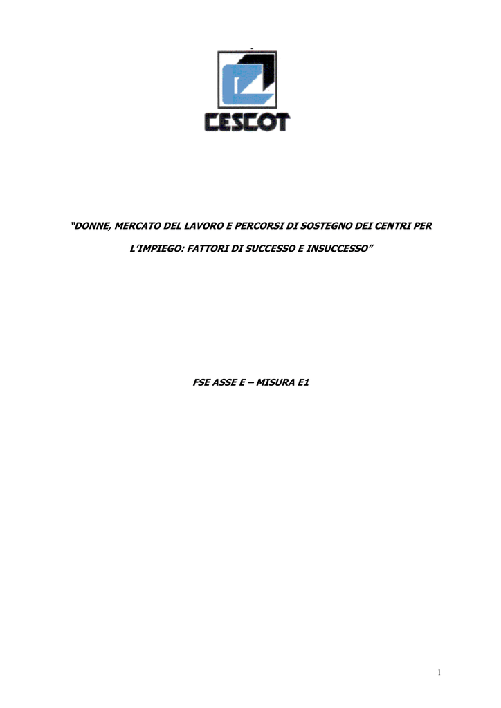 - “DONNE, MERCATO DEL LAVORO E PERCORSI DI SOSTEGNO DEI CENTRI PER L’IMPIEGO: FATTORI DI SUCCESSO E INSUCCESSO” FSE ASSE E – MISURA E1 1 Sommario Obiettivi pag. 2 Metodologia pag. 2 I risultati della ricerca - Premessa pag. 7 - Scenario nazionale di riferimento pag. 8 - Occupazione e disoccupazione femminile in Liguria pag. 10 - Focus sulle Donne iscritte ai Centri per l’Impiego pag. 12 della Provincia di Genova 2001-2002-2003 - Dati emersi dalle interviste rivolte alle donne occupate pag. 28 - Dati emersi dalle interviste rivolte alle donne disoccupate pag. 39 - Dati emersi dalle interviste rivolte alle aziende: pag. 49 mappatura delle tipologie di settori/aziende co-protagonisti del successo delle donne - Occupate e disoccupate a confronto pag. 59 - Riflessioni conclusive pag. 62 Allegati Allegato di approfondimento Focus: riflessioni sulle modalità di selezione, assunzione e gestione delle risorse umane Allegati metodologici 1 - Intervista strutturata rivolta a donne iscritte al Centro per l’Impiego nel triennio 20012003 attualmente occupate 2 - Intervista strutturata rivolta a donne iscritte al Centro per l’Impiego nel triennio 20012003 attualmente disoccupate 3 - Intervista strutturata rivolte ad aziende che hanno nel loro organico donne Bibliografia 2 Obiettivi Realizzare un’analisi integrata sulle caratteristiche autocentrate (le donne) e referenziali (il mercato), in chiave statica (caratteristiche soggettive) e dinamica (i comportamenti), per arrivare a definire un documento sintetico che evidenzi: i fattori di successo/parziale successo /insuccesso in relazione all’inserimento nel mondo del lavoro da parte delle donne iscritte al Centro per l’Impiego nel triennio 2001-2003 una mappatura delle tipologie di settori/aziende co-protagonisti del successo delle donne. Metodologia Per la realizzazione della ricerca sono state utilizzate fonti di tipo bibliografico e sono stati creati appositi strumenti di indagine. L’indagine si è sviluppata nei suoi aspetti qualitativi su tre diverse tipologie di target, scelte in base alla loro significatività in relazione agli indicatori “successo”, “parziale successo”, “insuccesso” : - donne occupate - donne attualmente disoccupate/inoccupate - aziende che hanno in organico donne La possibilità di mettere in relazione fra loro le componenti riferite alle “convinzioni” dei soggetti coinvolti nel processo consente di superare la pur necessaria fase di analisi quantitativa (presentata sull’universo), per approfondire le componenti di autopercezione e, comunque, quelle afferenti ai valori e ai disvalori che incidono sulle modalità comportamentali in ordine al successo o all’insuccesso lavorativo. Nella presente ricerca, infatti, si intende evidenziare come e quanto, nelle dinamiche lavorative, siano importanti tali “percezioni di sé”, perché conducono all’emissione di comportamenti pratici e circostanziati. Ad esempio, di fronte alla percezione dell’inadeguatezza delle proprie competenze professionali, la persona può attivare una consapevole strategia di integrazione, iscrivendosi a corsi di formazione ad hoc, oppure accettando lavori non esattamente conformi alle proprie aspettative, ma che le consentano di acquisire le capacità necessarie a rafforzare la propria posizione nel mercato del lavoro. 3 Più difficile di solito è il percorso parallelo, cioè quello legato alla valutazione delle proprie caratteristiche personali, che, oltre ad essere più complesso, “soffre” del fatto che la validazione esterna di tali caratteristiche è più instabile e sicuramente meno “oggettiva”. Decidere, nella propria valutazione personale, che un determinato incarico si è concluso con una mancata conferma per motivi in primo luogo oggettivi (es. insufficiente preparazione informatica, o poco tempo a disposizione a causa di impegni familiari) è un processo relativamente semplice, poiché implica l’applicazione di concetti quali “preparazione” e “misurabilità” del livello di preparazione stessa, o del grado di disponibilità necessaria, concetti che vengono utilizzati da parte di un “giudice” che è riconosciuto per sua natura “competente” in quanto datore di lavoro. Quando invece sono messe in discussione le caratteristiche personali (es. le mie capacità di comunicazione o la mia responsabilità sul lavoro), occorre applicare i concetti più delicati di “autodiagnosi” (non sempre le persone si valutano correttamente né ottengono da altri valutazioni corrette delle proprie capacità relazionali) e di “confronto con le proprie aspettative”. In un immaginario continuum si parte da motivazioni complesse e ad alto tasso di investimento cognitivo/affettivo, come il riscatto sociale e familiare, l’indipendenza personale e la possibilità di mantenersi, per arrivare a motivazioni meno “aggressive”, come l’esigenza di portare un contributo all’economia familiare od il bisogno di guadagnare per potersi permettere piccole spese personali durante gli studi. Non secondaria risulta la variabile relativa alla stima di sé, che, nel noto “gioco di specchi” del locus of control (Bernard Weiner, 1992), può indurre una donna ad attribuire il successo o l’insuccesso lavorativo - in modo automatico ed istintivo - o all’insita “cattiveria” del mondo esterno, o alla propria incapacità personale. Entrambe le posizioni, essendo stereotipate, sono sempre e comunque scorrette, poiché impediscono qualsiasi razionale disamina delle diverse situazioni lavorative che le donne si sono trovate ad affrontare: in alcune attività i datori di lavoro possono aver rilevato mancanze di natura tecnica, in altre di natura più legata alle caratteristiche personali, in altre ancora è possibile che il giudizio (positivo o negativo) sia stato equilibrato in relazione ad entrambi i versanti. Lo strumento creato e utilizzato per l’acquisizione dei dati di questa ricerca è un’intervist