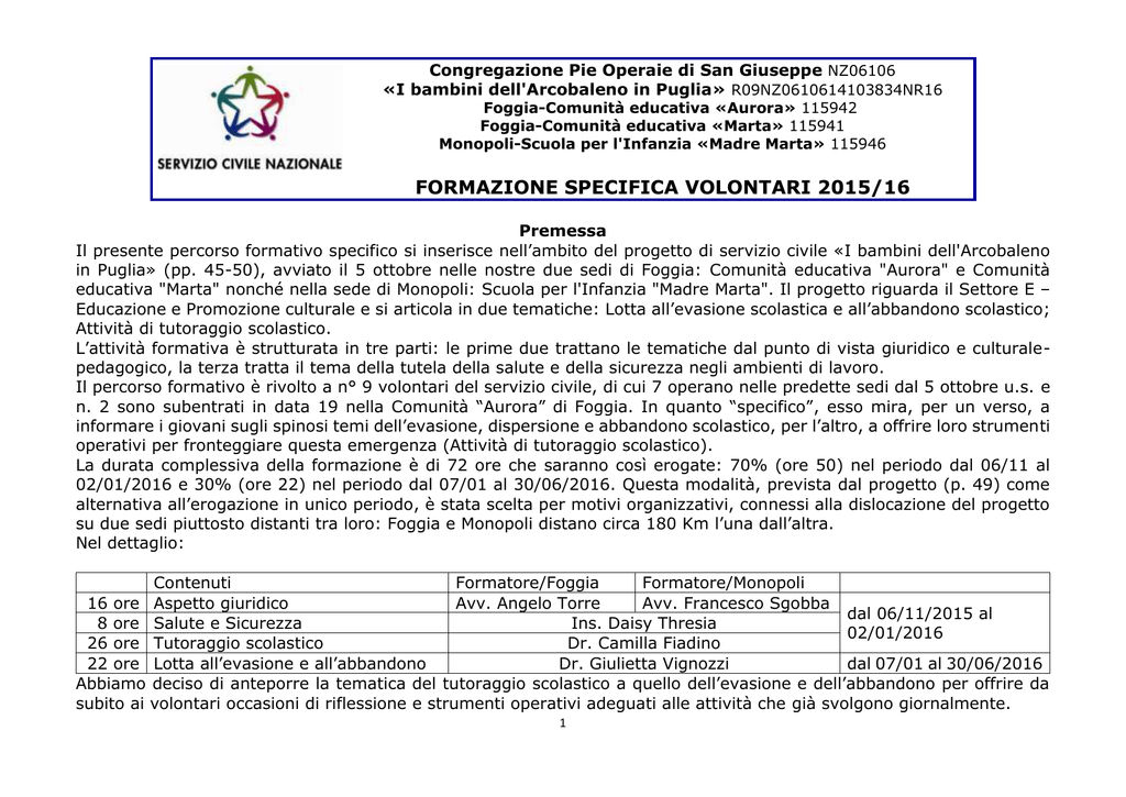 Progetto Formativo - Pie Operaie di san Giuseppe