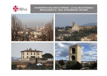 UN MAGNIFICO BALCONE SU FIRENZE: LA COLLINA DI PIAZZALE MICHELANGELO E I SUOI STRAORDINARI DINTORNI Il territorio del nostro percorso Veduta di Firenze dalle Rampe Questo percorso presenta caratteristiche assolutamente straordinarie per la varietà e la densità delle testimonianze storiche, paesaggistiche, architettoniche del territorio attraversato, territorio vasto perché abbraccia tutto il versante collinare dall’Oltrarno a San Niccolò, avendo come “spina dorsale” il Viale dei Colli, la lunga, romantica e panoramica passeggiata progettata dal Poggi nell’ambito dei lavori per Firenze Capitale. A monte e a valle di questa magnifica direttrice, la zona pedecollinare e le colline in un susseguirsi di ville, parchi, giardini, chiese, mura e bastioni, fortezze, torri, piccoli borghi, poderi di campagna ancora viva e lavorata, ma anche centri di ricerca scientifica d’avanguardia, e a ogni tornante scorci panoramici diversi ed emozionanti vedute sulla città. Veduta di San Miniato Da Montici verso Firenze Sud Un viaggio attraverso la varietà e l’unicità di un territorio sorprendente e anche un viaggio nel tempo, dal Medioevo a oggi, che offre la vicinanza al centro della città e - assieme - la lontananza offerta dalla quiete quasi irreale di certe stradine a volte solitarie dove è facile perdersi nella contemplazione dell’armonia del paesaggio e nella bellezza di ciò che l’uomo ha progettato, ideato, realizzato in perfetto equilibrio con l’ambiente e con la natura. La mappa La mappa: itinerario arancio Percorso base : itinerario arancio Il Viale dei Colli: una passeggiata romantica e panoramica dal Medioevo a Firenze Capitale P.za Ferrucci - V.le Michelangelo - P.le Michelangelo - V.le Galilei - P.le Galileo - V.le Machiavelli - P.le di Porta Romana - V.le Machiavelli - P.le Galileo - V.le Galilei - Via delle Porte Sante - Via del Monte alle Croci - Via di S. Miniato al Monte - V.le Michelangelo - P.za Ferrucci Da Piazza Francesco Ferrucci (il grande condottiero fiorentino, ultimo difensore della libertà comunali, ucciso durante l’assedio dell’esercito imperiale di Carlo V nella battaglia di Gavinana, vicino a Pistoia) si imbocca il Viale Michelangelo Il Viale dei Colli L’Oltrarno, le mura, il Forte dal Piazzale Viale Michelangelo Il centro dal Piazzale Michelangelo Viale Galilei: parte pedonale La parte est dal Piazzale Viale Machiavelli: il Bobolino Viale Michelangelo, Viale Galilei e Viale Niccolò Machiavelli, costituiscono, tutti assieme, il “Viale dei Colli”, la lunga e panoramica passeggiata da Ponte San Niccolò a Porta Romana concepita e realizzata da Giuseppe Poggi nell’ambito dei piani di ampliamento di Firenze Capitale (1865). Prolungamento ed estensione dei “viali circondari” alberati, avrebbe rappresentato il nuovo quartiere di collina per il ceto alto borghese, mantenendo intatto – attraverso le tipologie costruttive e la salvaguardia delle visuali - il valore di altissimo pregio ambientale del territorio. Concepito come passeggiata romantica, con cura infinita per tutti gli aspetti paesaggistici, tecnici, idrici, ricreativi. botanici, il Viale di Colli culmina con la bellissima terrazza panoramica del Piazzale, una tra le più straordinarie vedute spaziali sulla città e sulle colline che le fanno corona. Tenendoci sul lato destro del Viale Michelangelo, specie nel primo tratto, incontreremo numerosi villini, soprattutto dei primi del Novecento, tra i quali spicca quello progettato da Giovanni Michelazzi (civico 46 - 48) con elementi tipologici liberty. Al primo grande tornante (sulla sinistra, edifici di gusto neomedioevale del XX sec. edificati in pietraforte e dotati di bifore e torrette) costeggeremo il grande complesso sportivo polivalente degli Assi Giglio Rosso, al termine del quale si aprono bellissime vedute sulla collina di Fiesole. Il Villino liberty opera di Giovanni Michelazzi Edificio novecentesco di gusto neomedioevale Proseguendo, al termine del tornante successivo, superata Villa La Vedetta e il Campeggio Comunale, troveremo, sul lato est di Piazzale Michelangelo, l’ingresso al Giardino dell’Iris (visitabile in maggio, vedi. note) Giardino dell’Iris Risale al 1954 la creazione di questo giardino, nato per ospitare il “Premio Firenze”, un concorso internazionale per le migliori varietà di iris promosso da due appassionate ibridatrici della Società Italiana Amici dei Fiori, cui furono assegnati grazie a Piero Bargellini, allora Assessore alle Belle Arti e Giardini, i terreni detti “Podere dei bastioni”. Inaugurato nel 1957 oggi ospita circa 3mila varietà di iris, comprese le acquatiche, ed è sede della Società Italiana dell’Iris. La scenografica terrazza panoramica di Piazzale Michelangelo offre una vista davvero superba su Firenze, dal Forte di Belvedere (a sinistra) a Santa Croce svettano, con i loro profili straordinari, la Cupola del Duomo, Palazzo Vecchio, il Bargello, la torre ottagonale della Badia Fiorentina. Il fiume e i suoi ponti (al centro il Ponte Vecchio), i rilievi e i poggi vicini e lontani, la vista frontale delle colline di Fiesole e Settignano completano questo scenario. Interessante la veduta della porzione di mura trecentesche che dal Forte di Belvedere giunge alla Porta San Niccolò (Via di Belvedere le costeggia sul lato esterno), mura rinforzate da Michelangelo nell’ambito dei progetti di difesa al tempo dell’assedio di Firenze del 1529 ad opera dell’esercito di Carlo V. Veduta panoramica della città innevata dal Piazzale Michelangelo Panorama dalla Loggia del Piazzale Forte Belvedere e le mura trecentesche Il cuore della città Deviazione consigliata Dal Piazzale Michelangelo, sul lato ovest, si diparte la rampa che immette in Viale Giuseppe Poggi (se vogliamo evitarla possiamo prendere direttamente il Viale Poggi, alla nostra destra appena superato il Piazzale). Con una serie di scenografici e panoramici tornanti delimitati da una quinta verde questa bellissima str