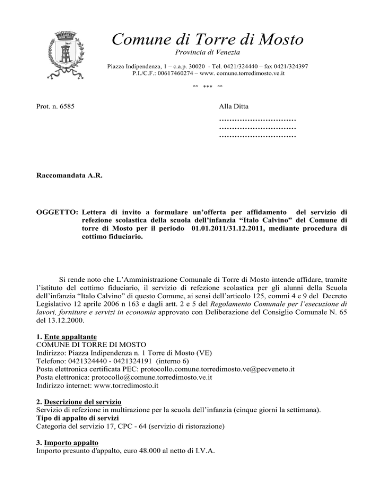 lettera d `invito mensa - Comune di Torre di Mosto