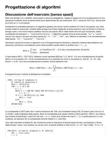 dove k < i e t[1···k] è una concatenazione di parole. Quindi abbiamo che