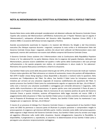nota al memorandum sull`effettiva autonomia per il popolo tibetano