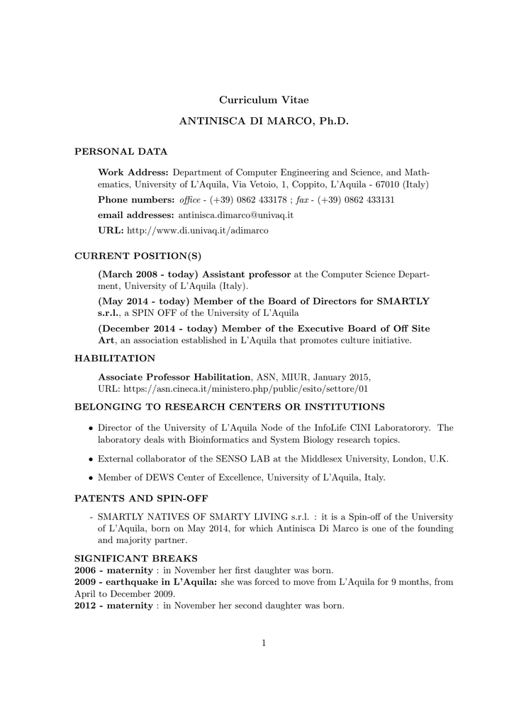 Curriculum Vitae ANTINISCA DI MARCO, Ph.D.