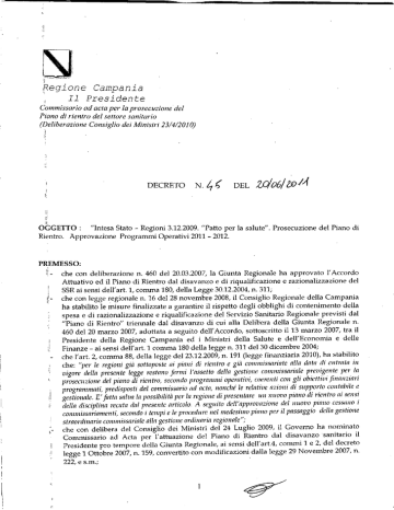 della RegIOneCamparua è stato nominato Commissario ad Acta per il Piano di Rientro con