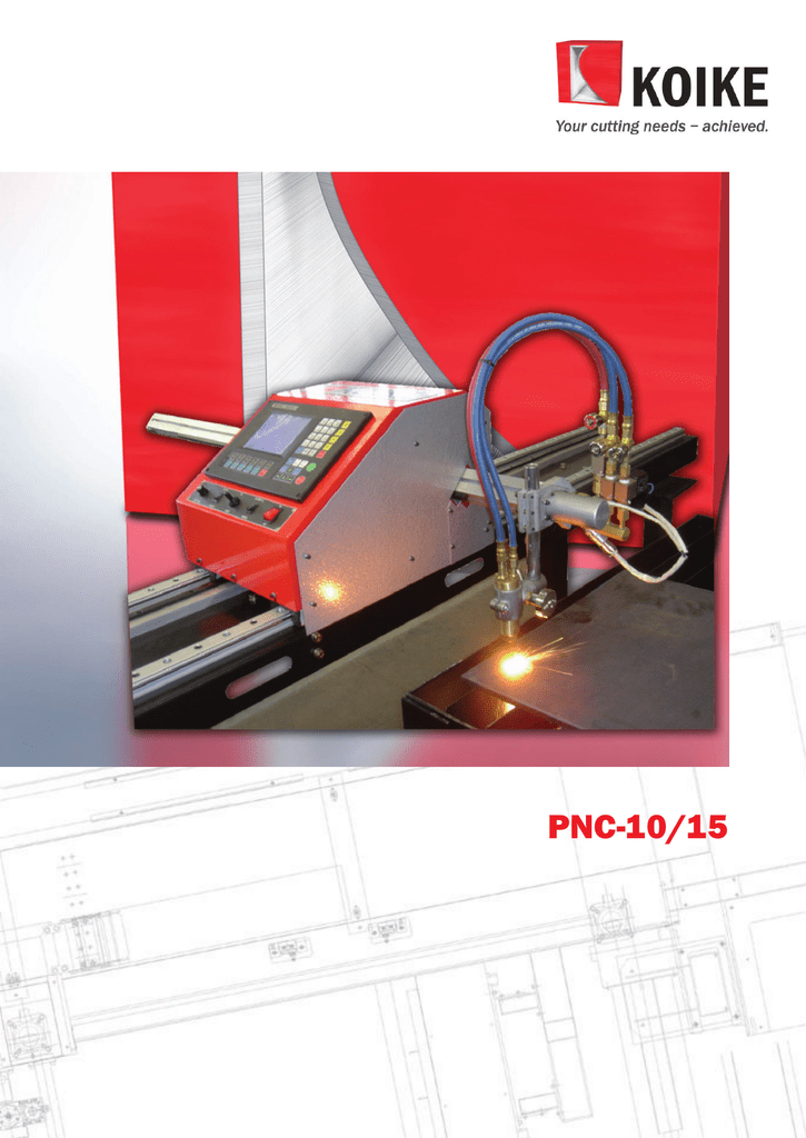 PNC-10/15 Tragbare CNC-Schneidemaschine Die PNC-10/15 ist die wirtschaftliche tragbare CNCSchneidemaschine um kostengünstig komplexe Geometrien in hoher Qualität mit Autogen-und Plasma zu schneiden. Mit seiner idealen Ausstattung für kleineund mittelständische Betriebe, kann die tragbare PNC-10/15 CNC-Schneidmaschine in einer Vielzahl von Branchen und Unternehmen Anwendung finden. Kompakt, leicht und einfach zu bedienen Die kompakte Bauform und das geringe Gewicht erlauben den flexiblen Einsatz an jedem Ort, z. B. auf der Baustelle. Präzise und effizient Schneiden Die intelligente KOIKE CNC bietet grundlegende NC- und Schneid-Routinen durch DXF-Import-oder interner Standard-Formen. Die Speicherkapazität beträgt mehr als 1000 Dateien. Mit Hilfe grafischer Unterstützung, ist auch die manuelle Programmierung einfach und effizient durchzuführen. Zwei Modelle sind verfügbar Arbeitsbereich /Blechgröße: 1.000 x 1.500 mm und 1.500 x 2.500 mm Autogen-und Plasmaschneiden Das System unterstützt Autogenschnitte für Material stärken 6-100 mm und Luft-Plasma Anlagen bis 30 mm. KOIKE Europe B.V. Grote Tocht 19 • 1507 CG Zaandam (NL) Phone +31 (0) 756127227 Fax +31 (0) 756702271 Web www.koike.nl E-Mail [email protected] Spezifikationen Typ PNC-10 PNC -15 Effektive 1.000 mm 1.500 mm Schneidbreite Länge Ausleger 1.500 mm 2.000 mm Effektive Schneidlänge 1.500 mm 2.500 mm Laufbahnlänge 2.000 mm 3.000 mm Eilgang 2.000 mm/min. Schneidgeschwindigkeit 100 - 2.000 mm/min. Anschlußspannung230 V /50 Hz Brennschneiden Brennaufhängung 1x motorisierte Höhenverstellung für Autogenbrenner Schneiddüsen 6x KOIKE 102-D7 tips Max. Blechdicke Autogen 5-100 mm Plasmaschneiden 1x motorisierte Höhenverstellung für Plasmabrenner Ø Brennaufhängung 35 mm Plasma System Luft- Plasma Anlagen Steuerung CNC Model KOIKE D410 Bedienungspult 5.7" LCD Graphik Display und Folientastatur Sprache Englisch Programm Eingabe Manuelle Eingabe ( MDI ) oder USB-Stick Achsen X/Y 2 Programm Code EIA Fest Programme 45 Standart Blechlagenkompensation, Dry Run, Rückwärts, Funktionen Spiegeln etc CAD/CAM Software KAP oder SIGMANEST KOIKE Engineering Germany Pappelweg 8 • 61169 Friedberg (DE) Phone +49 (0) 6031 161571-00 Fax +49 (0) 6031 161571-01 Web www.koike-engineering.com E-Mail [email protected]