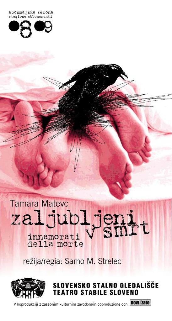 Tamara Matevc režija/regia: Samo M. Strelec V koprodukciji z zasebnim kulturnim zavodom/in coproduzione con SSG JE #LAN ZDRUŽENJA / IL TSS È ASSOCIATO A NETA NEW EUROPEAN THETRE ACTION Tamara Matevc Zaljubljeni v smrt Innamorati della morte Posve@eno Fulviu Tomizzi ob desetletnici njegove smrti Dedicato a Fulvio Tomizza nel decennale della morte Režiser in scenograf / Regia e scene: Samo M. Strelec Dramaturginja / Dramaturg: Tamara Matevc Lektor / Lettore: Jože Faganel Kostumografka / Costumi: Zvonka Makuc Skladatelj / Musiche: Igor Zobin Oblikovalec lu@i / Realizzazione luci: Rafael Cavarra Video: Antonio Giacomin IGRAJO / CON: Ema Tomaži@, nesmrtna Miranda Caharija Danica Tomaži@: Nikla Petruška Panizon Stanko Vuk: Romeo Grebenšek Pinko Tomaži@: Primož Forte Rina, slovenska služkinja: Lara Komar Angelo, kremeniti vrtnar: Primož Forte Le musiche al violoncello sono eseguite da Irene Ferro Casagrande. DRUGI SODELAVCI / ALTRI COLLABORATORI: Vodja predstave in rekviziterka / Direttrice di scena e attrezzista: Sonja Kerstein ZALJUBLJENI V SMRT Glasbo na violon@elo izvaja Irene Ferro Casagrande. Šepetalka / Suggeritrice: Neda Petrovi@ Scenska tehnika / Tecnici di scena: Giorgio Zahar, Marko Škabar, Aram Vodopivec, Andrea Terzoni, Tatjana Podlogar Tamara Matevc Tehni@ni vodja / Direttore tecnico: Peter Furlan Tonski mojster / Fonico: Diego Sedmak Lu@ / Elettricista: Peter Korošic Garderoberka in šivilja / Guardarobiera e sarta: Silva Gregor@i@ Izdelava scene / Realizzazione della scena: Starc Enterprise Nadnapisi / Sovratitoli: Tanja Sternad Predpremiera 15. 1. 2009, Mala dvorana SSG Trst Anteprima 15. 1. 2009, Mala dvorana SSG Trst Premiera 16. 1. 2009, Mala dvorana SSG Trst Prima 16. 1. 2009, Mala dvorana SSG Trst Tomaž Toporiši@ Liri@ni scenosled ljubezni in smrti ZALJUBLJENI V SMRT Tamara Matevc V dramskem prvencu Tamare Matevc je neizogibno pomisliti tudi na Fulvia Tomizzo, ki je tržaško tragično ljubezensko zgodbo med Danico Tomažič in Stankom Vukom obravnaval tudi v svojem romanu. Fulvio Tomizza na samem začetku “tragedije neke manjšine” oziroma romana, ki ga pod imenom Mladoporočenca iz ulice Rosetti spremlja ta izrazito etično in civilizacijsko zavezujoča zvrstna opredelitev, zapiše naslednje misli, ki se danes prebirajo enako aktualno in “boleče” kot v času nastanka romana (ali pa po časovnici še dalj v zgodovino, v krvavem medvojnem letu 1944, ko sta pod streli končala oba protagonista njegove žalostne pripovedi, hkrati pa “žrtveni jagnji” Trsta in njegove obmejne identitete): Ta zgodba, ki bi tudi danes, v času katastrofalnih groženj in otopelosti globoko razburkala javnost, je mojemu mestu skoraj neznana. Nasprotno pa jo znotraj narodnostne manjšine še predobro poznajo; a zdi se, kot da jim ni do tega, da bi na novo grebli po njej, že zaradi vznemirjenja, ki se ob tako kruti usodi znova polasti ljudi ali pa je že udomačeno v njih, ki so podobno tragedijo preživeli. Ko služkinja Rina v dramskem prvencu Tamare Matevc Zaljubljeni v smrt, napajajočem se iz podobnih virov kot Tomizzov nepozabni roman, natančneje v didaskalijskem opisu »obeša perilo, ki ni perilo, ampak pisma, urezana v posamezne kose perila«, skozi medij gledališča, žive igralske prezence tukaj in zdaj, spregovori o Tomizzovi dilemi, na kakšen način in s kakšnim namenom še enkrat povedati to tragično zgodbo o Danici Tomažič in Stanku Vuku. Ali, povedano nekoliko drugače: na kakšen način spregovoriti o tej skrivnostni »tržaški inkarnaciji« ene izmed številnih variacij shakespearske teme Romea in Julije, zgodbe o tragičnosti ljubezni, sprtosti in sovraštvu, ki ga tokrat ne utelešata dva družinska klana, ampak se je kot rakasto tkivo razširilo v vse pore družbe. V odnose med italijansko večino in slovensko manjšino, med levico in desnico, na odnose znotraj slovenske manjšine, na krvavi krog obračunavanj, ki ni bil in mogoče tudi nikoli ne bo dokončno razjasnjen. In tako kot si Tomizza ni zadal naloge razkriti morilce in njihove vzgibe, ampak je sledil zgodbi o Dani in Stanku, ki »ni samo zgodba njune žalostne usode pač pa ima tudi svoje politično, socialno in geografsko ozadje,« se gotovo tudi gledališka oživitev njune zgodbe, ki nastaja v SSG, ne bo trudila »razkriti zločinca«, ampak postati (še enkrat povedano z besedami Tomizze) zgodba, ki vleče zato, ker se njeni sestavni deli odzivajo nekemu centru in nekaj premaknejo v nas samih. EMA: ... zvečer pa sta se znašla v našem salonu, moja hči Danica Tomažič je igrala na klavir, moj bodoči zet Stanko Vuk jo je požiral z oči in je tisto noč ostal pri nas. Čez leto dni sta se poročila. Moj sin Pinko Tomažič, revolucionar, ustreljen na openskem strelišču 15. decembra 1941, zveze ni odobraval in tovarištva med njim in mojim zetom Stankom Vukom je bilo konec. – 15. decembra 1941 zjutraj je bil moj zet Stanko Vuk že na pot v zapor, kjer je preživel dve leti. Dvakrat tedensko je pisal moji hčerki Danici Tomažič v Trst. 13. januarja 1944 so ga preselili v Alessandrio, kmalu zatem pa prepeljali v koronejske zapore, 12. februarja 1944 so ga dokončno izpustili. ANGELO: … pa obleko, poročno. Da bo še za kakšno drugo priložnost. Za kakšen krst, če bog da. Za pogreb, če bo kdaj treba. Vzel bi tudi kakšen gvant od gospoda Pepija ... EMA: 10. marca 1944 so trije moški v belih plaščih ustrelili mojo hčerko Danico Tomažič, mojega zeta Stanka Vuka in njunega znanca Draga Zajca na njunem domu v ulici Rossetti. Smrt moje hčerke Danice Tomažič, mojega zeta Stanka Vuka in gospoda Draga Zajca ostaja ena izmed naših najbolj tragičnih skrivnosti. Ema odide umret, mladi zarajajo. Že nekaj strani branja dramskega besedila, napisanega kot izhodišče za gledališko uprizoritev zgodbe o tragičnem paru in usodni ironiji, ki se je poigrala s protagonisti dveh slovenskih družin, razkrije, da to nikakor ni organizirano na klasično dramski način z zaple