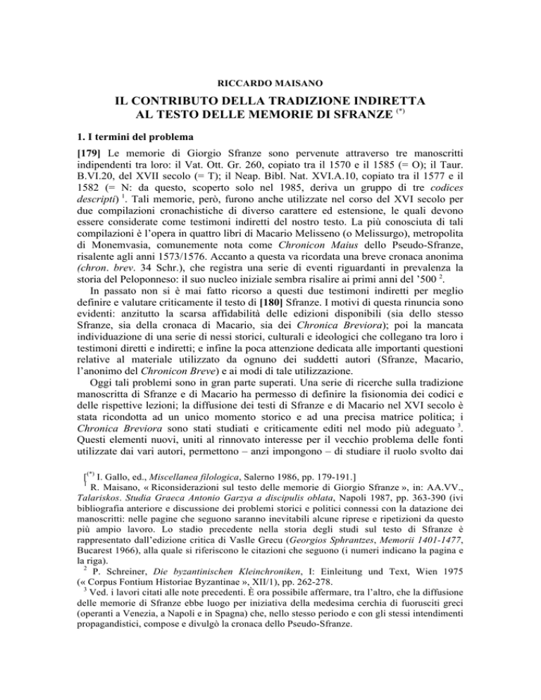R. Maisano, « Riconsiderazioni sul testo delle memorie di Giorgio Sfranze », in: AA.VV.,