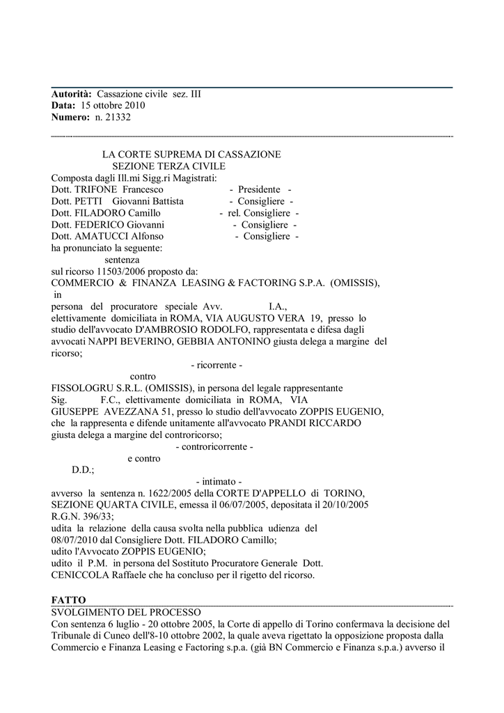 sentenza 15 ottobre 2010, n. 21332