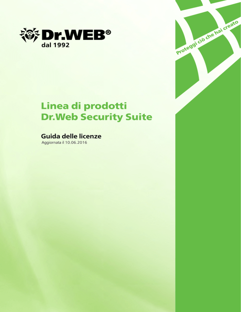 ai gg iò ic e ot r P Linea di prodotti Dr.Web Security Suite Guida delle licenze Aggiornata il 10.06.2016 c h he o at e r c Hai qualcosa da proteggere? Noi abbiamo Dr.Web! Sommario L’azienda Dr.Web..................................................................................................................................................... 4 Tecnologie Dr.Web................................................................................................................................................... 4 Licenze e certificati di approvazione............................................................................................................... 9 Certificato di licenza Dr.Web............................................................................................................................. 10 Linea di prodotti Dr.Web Security Suite...................................................................................................... 11 Licenze dei prodotti Dr.Web................................................................................................................. 11 Formati disponibili dei prodotti Dr.Web............................................................................................. 13 Dr.Web Home Security Suite – prodotti per uso domestico......................................................................... 16 Prodotti..................................................................................................................................................... 16 Dr.Web Security Space .......................................................................................................................... 17 Dr.Web Antivirus per Windows............................................................................................................ 21 Dr.Web Katana........................................................................................................................................ 23 Dr.Web Antivirus per OS X.................................................................................................................... 24 Dr.Web Antivirus per Linux................................................................................................................... 24 Dr.Web Scanner a linea di comando................................................................................................... 25 Dr.Web Mobile Security......................................................................................................................... 26 Dr.Web per Android...................................................................................................................... 26 Dr.Web per Blackberry.................................................................................................................. 27 Dr.Web Enterprise Security Suite. Prodotti per l’impresa............................................................................. 28 Come scegliere il prodotto giusto: l’algoritmo.................................................................................. 29 Pannello di controllo Dr.Web................................................................................................................ 30 Dr.Web Desktop Security Suite............................................................................................................. 32 Dr.Web Server Security Suite................................................................................................................ 33 Dr.Web per Windows Server........................................................................................................ 33 Dr.Web per OS X Server................................................................................................................ 35 Dr.Web per Novell NetWare Server............................................................................................ 36 Dr.Web per UNIX Server............................................................................................................... 37 Dr.Web Mail Security Suite.................................................................................................................... 38 Dr.Web per UNIX mail server....................................................................................................... 40 Dr.Web per MS Exchange............................................................................................................. 43 Dr.Web per IBM Lotus Domino................................................................................................... 45 Dr.Web per Kerio mail server....................................................................................................... 46 Dr.Web Gateway Security Suite............................................................................................................ 47 Dr.Web per UNIX Internet Gateway........................................................................................... 48 2 © Doctor Web, 2016 10.06.2016 Hai qualcosa da proteggere? Noi abbiamo Dr.Web! Dr.Web per Kerio Internet Gateway........................................................................................... 49 Dr.Web per MIMEsweeper........................................................................................................... 50 Dr.Web per Qbik WinGate........................................................................................................... 51 Dr.Web Mobile Security Suite............................................................................................................... 52 Dr.Web Retail Security Suite.................................................................................................................. 54 Pachetti Dr.Web............................................................................................................................................. 54 Utilità di disinfezione Dr.Web................
