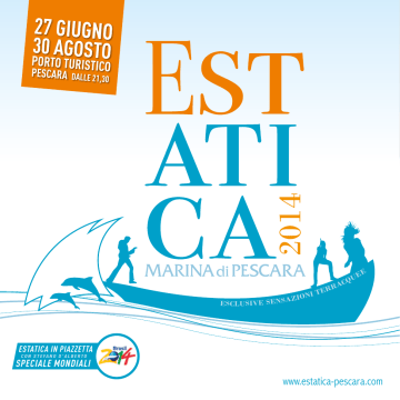 2014 ZI E S C LU S I V E S E N S A ONI TER CQ RA UE E ESTATICA IN PIAZZETTA C O N S T E FA N O D ' A L B E R T O SPECIALE MONDIALI www.estatica-pescara.com SILVIA MEZZANOTTE 27/06 CAPAREZZA 10/07 2, 4, 5, 7 luglio Circo El Grito 20 Decibel - € 10,00 adulti; € 5 fino a 12 anni Galà di apertura Nell’ambito dell’ottava edizione di Funambolika, una compagnia innovativa sotto un vero tendone: i numeri acrobatici classici incontrano coreografia e musica dal vivo in una creazione sorprendente. Capacità del tendone limitata a 200 posti. www.funambolika.com, tel 085/693093 o 085/4503036. Regine – spettacolo musicale - Ingresso libero Giovedì 3 luglio Venerdì 27 giugno SILVIA MEZZANOTTE Uno spettacolo in sette lingue, i maggiori successi di tutti i tempi, le grandi interpreti del panorama internazionale: questa, in sintesi, è la nuova sfida teatrale di Silvia Mezzanotte, voce dei Matia Bazar che, accompagnata da Pino De Fazio al pianoforte, Luca Cantelli al contrabbasso e Max Govoni alla batteria, in questa sua dimensione da solista celebra in atmosfere jazz le più grandi interpreti di tutti i tempi, da Liza Minnelli a Maria Callas. La serata sarà preceduta da un incontro fra l’artista e alcuni allievi dell’Accademia di canto Pro Arte di Pescara. Domenica 29 giugno Accademia di danza Rassjanka Cipollino - Suit de ballet - € 10,00 adulti; € 5,00 ragazzi La favola di Gianni Rodari è messa in scena in uno spettacolo musicale coreografato da Marina Kozina e Elena Plyushkova, con musica di Karen Khachaturian. Lo spettacolo è realizzato con i ballerini del corpo di ballo della scuola pescarese di danza Rassjanka, via Cavour 18. Prevendite presso la scuola, info tel 389/2496396. Teatro dell’Aventino I musicanti di Brema – teatro ragazzi - Ingresso libero L’associazione culturale di Palena “Teatro dell’Aventino” presenta un adattamento della fiaba dei fratelli Grimm “I musicanti di Brema”, con gli attori e burattinai Enza Paterra, Valentina Chiaverini, Francesco Pulsinelli, Fabio Di Cocco. Scene: Frank’s Puppet Studio. Musiche: Domenico e Francesco Pulsinelli. Pupazzi e Costumi: Enza Paterra. Produzione: Teatri montani. La storia è costruita in modo tale che i bambini interagiranno direttamente con gli attori. Domenica 6 luglio Miss Grand Prix - Mister Italia - Ingresso libero La Claudio Marastoni Communication organizza i più prestigiosi concorsi di bellezza maschili e femminili italiani con caratteristiche uniche che li contraddistinguono e da cui sono nati numerosi personaggi dello spettacolo. Le selezioni sono oltre 400 su tutto il territorio nazionale, con lo scopo di portare i 200 migliori alla Finale nazionale. Mister Italia è presente da oltre 25 anni; Miss Grand Prix festeggia i 27 anni. MAX IONATA ORGAN TRIO GEGÈ TELESFORO 11/07 JOHN SCOFIELD UBERJAM BAND 12/07 Martedì 8, mercoledì 9 luglio - Speciale Mondiali Dalle ore 21.00 - Estatica in piazzetta - Le semifinali Giovedì 10 luglio CAPAREZZA Museica tour - Ingresso 15 € + dp L’ottava edizione del Festival Onde Sonore si apre all’interno del cartellone di Estatica con Caparezza, il cui nuovo lavoro discografico è uscito il 22 aprile per la Universal Music con il titolo “Museica”. «Museica è il mio museo, la mia musica, il mio album numero 6 - spiega lo stesso Caparezza – ogni brano prende spunto da un’opera pittorica». Venerdì 11 luglio MAX IONATA ORGAN TRIO GEGÉ TELESFORO Ingresso € 15 / abbonamento 3 serate PJ@Marina € 30 Venerdì 11 luglio 2014, sarà il Max Ionata Organ Trio con la presenza speciale di Gegé Telesforo ad aprire la 42esima edizione di Pescara Jazz. Il sassofonista Max Ionata sarà accompagnato sul palco da Alberto Gurrisi all’organo Hammond e da Amedeo Ariano alla batteria. Si uniscono al trio la voce, lo scat e la presenza scenica di Gegé Telesforo. www.pescarajazz.com Domenica 13 luglio - Speciale Mondiali Dalle 21.00 - La finale - Maxischermo in arena Lunedì 14 luglio Associazione Flaiano Premi Flaiano Letteratura - dalle 18,30 - Ingresso libero Presentazione dei tre romanzi finalisti al premio di Letteratura “Flaiano”, scelti da una giuria tecnica presieduta da Dacia Maraini. Seguirà la votazione da parte dei 200 giurati popolari. Alle 21 sarà messo in scena lo spettacolo “La macchina infernale”, libero adattamento da Jean Cocteau a cura di Paolo Rosato e Rossella Mattioli: in scena i giovani allievi del Laboratorio Teatrale del Mediamuseum. Informazioni tel 085/4517898 o www.premiflaiano.it Martedì 15 luglio - Estatica in piazzetta - Note di notte Mercoledì 16 luglio Clover Rock in acoustic - Ingresso libero Luca Cicchitti (voce), Claudio Esposito (chitarra acustica e cori), Davide Di Giovanni (chitarra acustica) e Rafael Valle (percussioni) presentano cover in chiave acustica di pop, rock e grunge, come Nirvana, Red Hot Chili Peppers, Bryan Adams. Sabato 12 luglio Giovedì 17 luglio JOHN SCOFIELD UBERJAM BAND DANIEL SIDNEY BECHET GROUP Il chitarrista statunitense John Scofield è uno dei riferimenti jazzistici fondamentali per lo strumento negli ultimi trent’anni. Si esibirà sul palco del PJ@Marina insieme al chitarrista ritmico Avi Bortnick, al bassista Andy Hess e al batterista Louis Cato per un dare vita ad un concerto ricco di grande energia e ritmo. www.pescarajazz.com La sezione PJ@Marina di Pescara Jazz si conclude con il concerto del Daniel Sidney Bechet Group. Il quintetto rilegge la musica di Sidney Bechet, padre del batterista che sarà accompagnato sul palco da Olivier Franc al sax soprano, Benoit de Flamesnil al trombone, Jean-Baptiste Franc al pianoforte e Gilles Chevaucherie al contrabbasso. Ingresso € 15 / abbonamento 3 serate PJ@Marina € 30 Ingresso € 15 / abbonamento 3 serate PJ@Marina € 30 TEO TEOCOLI GREG & THE FRIGIDAIRES 25/07 3/08 Giovedì 31 luglio Estrodestro Improvvisazione Teatrale Life - Ingresso libero Gli attori della Scuola nazionale di improvvisazione teatrale “Estrodestro” di Pescar