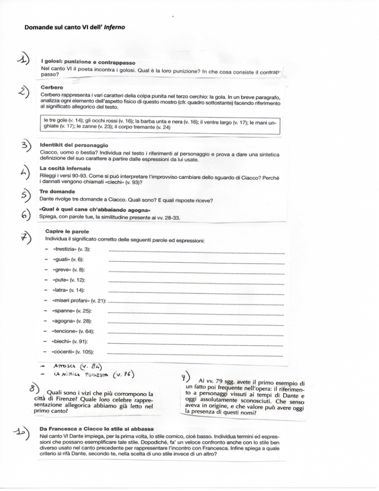 Domande Canto VI Inferno