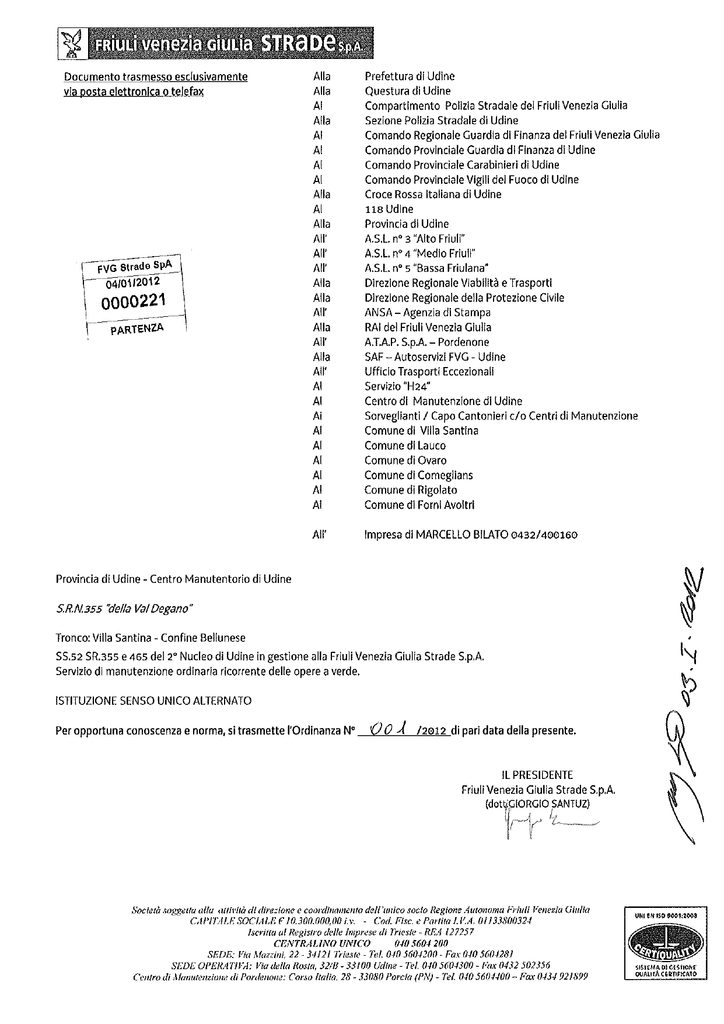 Documento trasmesso esclusivamente Alla Prefettura di Udine