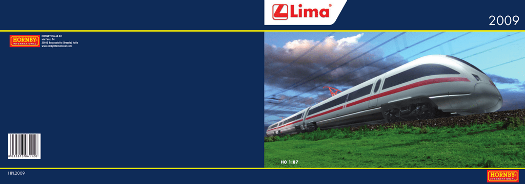 2009 HORNBY ITALIA Srl via Ferri, 14 25010 Borgosatollo (Brescia) Italia www.horbyinternational.com H0 1:87 HPL2009 Siamo lieti di presentarVi il nuovo catalogo Lima che caratterizza l’entusiasmante gamma delle novità, nonché set e modelli già esistenti Lima. Questa è la prima volta in molti anni che un catalogo viene dedicato solo a Lima e siamo certi che voi apprezzerete la presentazione e lo stile grafico di questa nuova pubblicazione. Quest’anno vi proponiamo non solo innumerevoli nuovi set e modelli ma anche l’intera gamma di nuovi modelli dipinti in cui vengono migliorate le caratteristiche nei minimi dettagli. L’immediato utilizzo degli edifici della gamma SkaleStructures, aggiunge un alto grado di definizione ad ogni plastico, offrendo edifici come pure abitazioni domestiche per modellisti da utilizzare in modo semplice. La suprema gamma contiene anche questouna fantastica selezione di materiale scenografico di alta qualità che include alberi e floccaggio, i quali, combinati insieme, creano il paesaggio ideale per qualsiasi modello ferroviario. Per poter controllare la vostra ferrovia c’è un eccellente sistema digitale Hornby. Dimenticate i sistemi complicati presenti nel mondo del modellismo e ammira la centralina DCC Hornby. Quest’ultima è studiata sul presupposto che deve essere facile da usare e ancor più facile da capire, il sistema Hornby risponde ai bisogni degli appassionati più esigenti del fermodellismo in modo semplice e concreto. Infine, noterete che ci sono modelli in questo catalogo che sono indicati come “esauriti”. Questo significa che non c’è stock di questo articolo in particolare nel magazzino Hornby International, tuttavia può essere presente dal vostro negoziante di fiducia, perciò controllate con lui prima di verificare con altri negozi. Liebe Modellbahner, vor Ihnen liegt der neueste Rivarossi-Katalog mit vielen interessanten neuen – und natürlich auch allen beliebten und bekannten – Lima-Modellen. Seit vielen Jahren ist dies der erste eigenständige Lima-Katalog. Wir hoffen, dass Ihnen die neue Aufmachung gefällt. Neben verschiedenen neuen Zugpackungen und Modellen gibt es auch eine ganze Reihe bekannter Modelle, die wir für Sie überarbeitet haben und in neuen interessanten Ausführungen anbieten. Die fertig gebauten, lackierten und patinierten Gebäude der SkaleStructures-Serie sind ideal, um Ihrer Modellbahnanlage mit wenig Aufwand die individuelle Note und Detailtreue zu verleihen, die Sie sich wünschen! Dieses Angebot wird mit der großen Auswahl der SkaleScenic-Serie, unter der wir Ihnen hochwertiges Landschaftszubehör anbieten, perfekt abgerundet. Um Ihre mit diesen Produkten perfekt gestalteten Anlage zu steuern, gibt es das hervorragende Hornby Digital Control System. Komplizierte und teure Systeme, deren Konfiguration nur Experten verstehen, waren gestern. Hornby DCC ist einfach zu bedienen, noch einfacher zu verstehen und bietet dem größten Teil der Modellbahner genau die Funktionen, die sie am meisten benötigen. Schließlich werden Sie bemerken, dass einige Modelle in diesem Katalog bereits als “ausverkauft” markiert sind. Das bedeutet jedoch nicht, dass diese Modelle bei Ihrem Fachhändler nicht erhältlich sind. Sie sind lediglich werkseitig ausverkauft. Wir wünschen Ihnen nun viel Spaß beim Durchblättern dieses Katalogs und hoffen, dass Sie viele Modelle für sich entdecken, die wir Ihnen dieses Jahr anbieten! Ora leggete e scoprite le grandi novità che Lima e Hornby International vi ha riservato quest’anno. www.hornbyinternational.com Bienvenu dans le dernier catalogue Lima, constitué de modèles Rivarossi nouveaux ou déjà existants. Pour la première fois depuis quelques années, un catalogue spécifique à Lima est édité, et nous sommes certains que vous apprécierez la présentation et le nouveau graphisme spécialement adoptés pour cette nouvelle publication. En plus des coffrets et autres modèles entièrement nouveaux, Lima propose une large gamme de nouvelles décorations pour enrichir les réseaux des plus simples aux plus complexes. Les bâtiments prêts à l’emploi de la gamme SkaleStructures ajoutent un haut degré de réalisme à n’importe quel réseau, en proposant des bâtiments typiquement ferroviaires et urbains, que les modélistes pourront utiliser sans modération. Ce haut niveau de détail est également proposé par notre gamme SkaleScenics: une exceptionnelle sélection d’éléments de décor incluant arbres et flocages qui combinés permettent de créer un décor parfait pour tout type de réseau. Et pour contrôler l’ensemble de votre réseau, nous vous proposons l’excellent système Digital Hornby. Oubliez les systèmes compliqués, et appréciez la simplicité et l’efficacité du système Digital Hornby, conçu pour être facilement compréhensible, le système Hornby répond aux exigences de la plupart des modélistes, de manière simple et efficace. Enfin, vous remarquerez que la mention «Sold Out» figure sur certains des produits figurants dans le catalogue. Cela signifie que ces produits ne sont plus disponibles dans l’entrepôt Hornby International, mais peuvent cependant être disponibles chez la filiale ou distributeur Hornby de votre pays. Par conséquent, n’hésitez pas à contacter votre détaillant qui pourra peut-être commander ces produits! A présent, regardons ce que Lima et Hornby International ont à vous proposer cette année Welcome to the latest Lima catalogue featuring the exciting range of new and existing Lima train sets and models. This is the first time in several years that a dedicated catalogue for Lima has been produced and we are certain that you will admire the presentation and graphic style of this new publication. Not only are there several new train sets and models this year but a whole host of newly decorated models to enhance any railway layout from the simple train set oval to the most complex of layouts