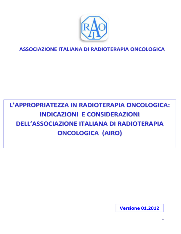 ASSOCIAZIONE ITALIANA DI RADIOTERAPIA ONCOLOGICA L’APPROPRIATEZZA IN RADIOTERAPIA ONCOLOGICA: INDICAZIONI E CONSIDERAZIONI DELL’ASSOCIAZIONE ITALIANA DI RADIOTERAPIA ONCOLOGICA (AIRO) Versione 01.2012 1 CONSIGLIO DIRETTIVO AIRO Presidente Giovanni Mandoliti Presidente Eletto Riccardo Maurizi Enrici Consiglieri Marco Lioce Giovanna Mantello Stefano Pergolizzi Luciano Pompei Marta Scorsetti Marco Stefanacci Elvio Russi Segretario Presidenza Giovanni Pavanato Rappresentante MED 36 Stefano Maria Magrini Rappresentante SNR Francesco Lucà Segretario Amministrativo Vittorio Donato COMMISSIONE SCIENTIFICA AIRO Coordinatore Umberto Ricardi Componenti Renzo Corvò Domenico Genovesi Lorenzo Livi Alessio G. Morganti Mauro Trovò 2 1. Perché questo documento? L’AIRO, quale Società degli Oncologi Radioterapisti, ritiene opportuno definire la propria visione sull’appropriatezza applicata alla Radioterapia Oncologica attraverso un documento destinato al pubblico, a specialisti di altre discipline e agli amministratori di aziende ospedaliere e sanitarie; si tratta infatti di tematiche che toccano interessi molteplici (in primo luogo quelli dei pazienti). Questo documento vuole pertanto essere un primo contributo informativo, ovviamente non esaustivo, a proposito delle nuove tecnologie disponibili e delle nuove indicazioni alla radioterapia, sia come unica modalità di cura, sia in associazione a chemioterapia, a terapie biologiche “mirate” (“target therapy”) e a chirurgia. L’Oncologo Radioterapista è per definizione lo specialista esperto nell’impiego delle radiazioni ionizzanti (Dlgs 187/2000), da sole o in combinazione con i farmaci, per la cura del cancro. L’Associazione Italiana di Radioterapia Oncologica (AIRO) vuole con questo documento richiamare la necessità di trattamenti qualitativamente adeguati sia nell’ambito della prescrizione, sia in quello della impostazione e della esecuzione e suggerire standard operativi di livello elevato, anche in un momento caratterizzato da una profonda crisi economica. Nelle pagine seguenti saranno quindi affrontate, dopo una breve introduzione, tematiche specificamente legate ad aree più o meno controverse, riferite in particolare all’impiego adeguato e appropriato di nuove apparecchiature e tecnologie o di nuove indicazioni alla radioterapia. Poiché il documento è pensato per essere fruito dal pubblico, da specialisti e amministratori, le parti di interesse più generale sono riportate di seguito, mentre quelle che costituiscono approfondimenti, metodologici e non, oppure note tecniche, sono incluse, per semplicità di consultazione e per una lettura più agile, in un Glossario di termini tecnici e appaiono in corsivo minuscolo. Per una più facile fruizione del testo, in azzurro sono riportati i richiami a questi approfondimenti, Una Commissione promossa dalla prestigiosa rivista “Lancet Oncology” al fine di produrre un rapporto ad hoc sulla appropriatezza delle cure e composta da prestigiosi oncologi, farmacologi, epidemiologi, membri di Autorità regolatorie (Agenzia Europea del Farmaco, EMA), nonché da associazioni di pazienti ed altri portatori di interessi (“stakeholder”), conclude così’ nell’ottobre 2011: “Non è più tollerabile politicamente la disuguaglianza nell’accesso a cure oncologiche sostenibili. I professionisti coinvolti nella lotta al cancro e l’industria devono assumersi la responsabilità di non accettare evidenze scientifiche al di sotto degli standard e un’etica a favore di benefici anche molto piccoli a qualsiasi costo; piuttosto, abbiamo bisogno di prezzi giusti e di un reale valore delle nuove tecnologie” (Lancet Oncology, 12: 10, 933, 2011). Le principali Società oncologiche statunitensi, quella degli oncologi clinici (American Society for Clinical Oncology, ASCO) e quella degli oncologi radioterapisti (American Society for Radiation Oncology, ASTRO) hanno assunto già da tempo la responsabilità di azioni positive in questo contesto, quali quelle richiamate nel Glossario. Anche l’AIRO intende avviare un percorso di questo tipo. 3 2. Introduzione L’attuale situazione socio-politica è caratterizzata da una grave crisi economica, che ha prodotto una contrazione delle risorse destinate alla sanità in tutti i Paesi, ma in particolare in quelli che godono di un livello elevato di benessere economico (“high income countries”), tra i quali va annoverata l’Italia. E’ interessante notare che tale contrazione si è avuta a prescindere dal modello di sistema sanitario: negli Stati Uniti come in Europa ed anche nel nostro Paese. Allo stesso tempo, l’impetuoso sviluppo tecnicoscientifico ha avuto come conseguenza indesiderata l’aumento dei costi (per nuovi farmaci, nuove tecnologie, per una diversa visione delle cure palliative e di quelle cosiddette “di fine vita” e anche per i programmi intensivi di controlli clinici periodici - follow up - dopo la cura). Ciò è accaduto soprattutto negli “high income countries”, che hanno sinora conosciuto (e tollerato) una crescita poco controllata della spesa sanitaria. Oggi “…molte nazioni stanno limitando l’accesso a trattamenti e programmi di assistenza per garantire il pareggio del bilancio dei loro sistemi sanitari… con modalità molto diverse fra loro… non sempre basate su un dibattito razionale… o sul solido buonsenso clinico” (Collingridge D., in: “Delivering affordable cancer care in high income countries”, Lancet Oncology, 12: 10, pp. 923-924, 2011). Ciò vale in particolare per la cura del cancro, della quale la radioterapia è una componente indispensabile, utilizzata in circa il 60-70 % degli ammalati (Warren, JR et al., Evaluation of trends in the cost of initial cancer treatment, J Natl Cancer Inst, 2008; 100: 888-897); il suo fabbisogno è però stimato come superiore a questi valori, anche a causa delle nuove indicazioni e dell’invecchiamento della popolazione, e si stima possa crescere de