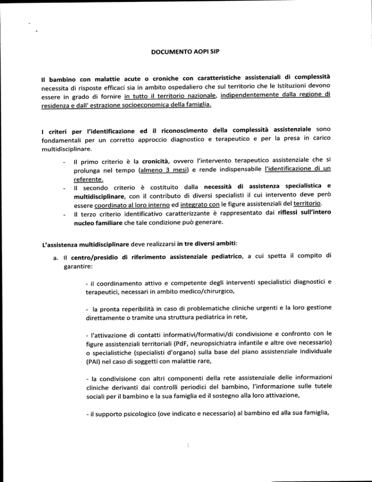 DOCUMENTO AOPI SlP il bambino con malattie acute o croniche