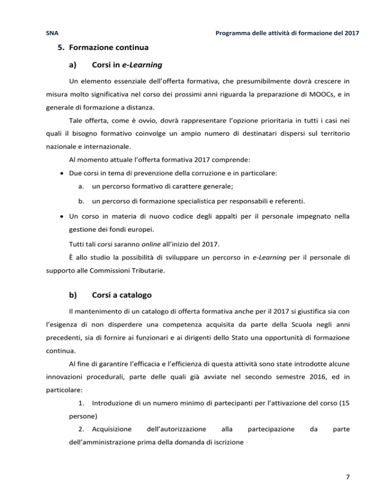 Formazione continua - Scuola Nazionale dell`Amministrazione