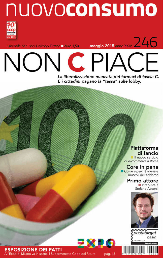 nuovoconsumo Il mensile per i soci Unicoop Tirreno n euro 1,50 maggio 2015 anno XXIV 246 NON C piace La liberalizzazione mancata dei farmaci di fascia C. E i cittadini pagano la “tassa” sulle lobby. Piattaforma di lancio n Il nuovo servizio di e-commerce a Roma Core in pena n Come e perché allenare i muscoli dell’addome Primo attore n Intervista a Stefano Accorsi NAZ/228/2008 Esposizione dei fatti All’Expo di Milano va in scena il Supermercato Coop del futuro pag. 45 SOLO PERTE RACCOLTA PUNTI 2015-2016 VALIDA SOLO PER I SOCI UNICOOP TIRRENO Per conoscere tutti i premi: www.catalogosoci.unicooptirreno.coop.com ACCUMULA ACCUMULA PUNTI CON LO SHOPPING ONLINE I PUNTI SARANNO ASSEGNATI SOLO PER TRANSAZIONI CONCLUSE ON LINE, PASSANDO PRIMA DAL SITO: www.catalogosoci.unicooptirreno.com SOLO PERTE RACCOLTA PUNTI 2015-2016 VALIDA SOLO PER I SOCI UNICOOP TIRRENO Per conoscere tutti i premi: www.catalogosoci.unicooptirreno.coop.com ACQUARIO DI LIVORNO Ingresso adulto Acquario di Livorno 800 punti SPENDI Buono valido per il ritiro gratuito di un biglietto di ingresso adulto individuale. Il buono potrà essere utilizzato dal 1 aprile 2015 al 31 maggio 2016. Ingresso bambino Acquario di Livorno 500 punti SPENDI Buono valido per il ritiro di un biglietto di ingresso Ragazzo (da 1 metro fino a 140 cm di altezza). Il buono potrà essere utilizzato dal 1 aprile 2015 al 31 maggio 2016. I bambini sotto 1 metro di altezza entrano GRATIS. L’Acquario di Livorno, un viaggio alla scoperta delle meraviglie del mare. 3.000 mq di superficie espositiva, 33 vasche che ospitano oltre 2.000 animali di 300 specie diverse. Star 2015 della struttura sono gli squali pinna nera che nuotano nella vasca indopacifica assieme ad Ari e Cuba - due splendide tartarughe verdi già protagoniste della struttura –, due pesci napoleone ed i pesci scorpione. Tra i protagonisti, i cavallucci tropicali in una vasca a loro dedicata nella galleria tropicale, esemplari tanto amati non solo dai più piccoli ma anche dai più grandi. La struttura, situata sul lungomare di Livorno all’interno della Terrazza Mascagni, gode di una posizione privilegiata di forte impatto emotivo e scenografico. In linea con la filosofia di Costa Edutainment che la gestisce – propone al pubblico un percorso di visita integrato unico sul territorio nazionale che unisce l’esposizione acquariologica ad uno spazio adibito ad ospitare mostre che si rinnovano periodicamente e che consentono un approfondimento sui temi dell’arte, della storia, della cultura e della scienza. Al termine della visita, è possibile accedere alla Terrazza Panoramica da cui ammirare le bellezze della costa livornese e delle isole dell’Arcipelago Toscano. La struttura, gestita da Costa Edutainment SpA, ha festeggiato nel 2014 il 4° compleanno di attività dalla riapertura avvenuta il 31 luglio 2010, dopo 11 anni di chiusura ed un lavoro di restauro effettuato da Opera Laboratori Fiorentini. Per informazioni su orari, prezzi e prenotazioni Tel. 0586/269.111-154, [email protected] [email protected] - www.acquariodilivorno.it SOLO PERTE RACCOLTA PUNTI 2015-2016 VALIDA SOLO PER I SOCI UNICOOP TIRRENO Per conoscere tutti i premi: www.catalogosoci.unicooptirreno.coop.com LA STRADA DEL VINO E DELL’OLIO COSTA DEGLI ETRUSCHI 1 ingresso Le Strade del Vino 900 punti SPENDI Buono valido per il ritiro di un biglietto adulto per la visita guidata a una cantina con degustazione di vini. Scadenza voucher 31 maggio 2016 1 ingresso Le Strade del Vino 900 punti I vini e gli olii della costa degli Etruschi. La Strada del Vino e dell’Olio Costa degli Etruschi copre un percorso che supera i 150 km di lunghezza lungo la costa tirrenica e l’Isola d’Elba nella Provincia di Livorno, raggiungendo una parte della Provincia di Pisa. In questa zona si può degustare un calice di vino in una delle cantine immerse tra i vigneti e il verde della “macchia” mediterranea, ma con l’azzurro intenso del mare sullo sfondo, visitare un frantoio imparando a riconoscere oli provenienti da differenti varietà e assaporare la saporosa cucina toscana nei ristoranti circondati dalla calda accoglienza di un agriturismo. Siamo in quella parte di Toscana in cui la rivoluzione italiana del vino ha avuto inizio con il precursore dei “Super Tuscans”, il Sassicaia, e proseguito con le iniziative dei tanti viticoltori di questo territorio sparsi nelle cinque zone DOC del territorio, arricchito da una pregevole produzione di oli d’oliva e da prodotti gastronomici di qualità impiegati nella ricca cucina locale. Le Doc della Strada del vino SPENDI Buono valido per il ritiro di un biglietto per la visita guidata al frantoio o all’apicoltura con degustazione dei loro prodotti. I bambini fino a 5 anni compresi entrano GRATIS. Scadenza voucher 31 maggio 2016 1 ingresso Le Strade del Vino 1.700 punti La prima zona DOC che si incontra arrivando da nord è quella del Terratico di Bibbona, la DOC più giovane, dove grandi aziende e piccoli produttori hanno già iniziato a produrre vini di ottima qualità. Subito dopo troviamo la DOC Montescudaio, in Provincia di Pisa, una zona più collinare e fresca dove i vini sono eleganti e profumati, a tratti quasi austeri. Dopo pochi chilometri si entra in piena Bolgheri DOC, patria del Sassicaia e di altri grandi vini protagonisti della storia enologica italiana degli ultimi anni. Passando lungo il filare di cipressi cantato dal Carducci, dichiarato monumento nazionale, e arrivando a San Guido, si trova la cantina del Sassicaia e l’ufficio informazioni della Strada del Vino e dell’Olio. Scendendo verso sud, si entra nella DOC Val di Cornia dove i vini hanno un carattere solido e dove le particolari mineralizzazioni del terreno conferiscono ai grandi rossi aspetti austeri e profondi. Attraversando il mare a Piombino, si giunge all’Isola d’Elba con la sua DOC dove l’aleatico passito è il prodotto più tipico e interessante ma dove l’impegno di pochi produttori st