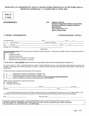 domanda di inserimento nelle graduatorie regionali di settore della